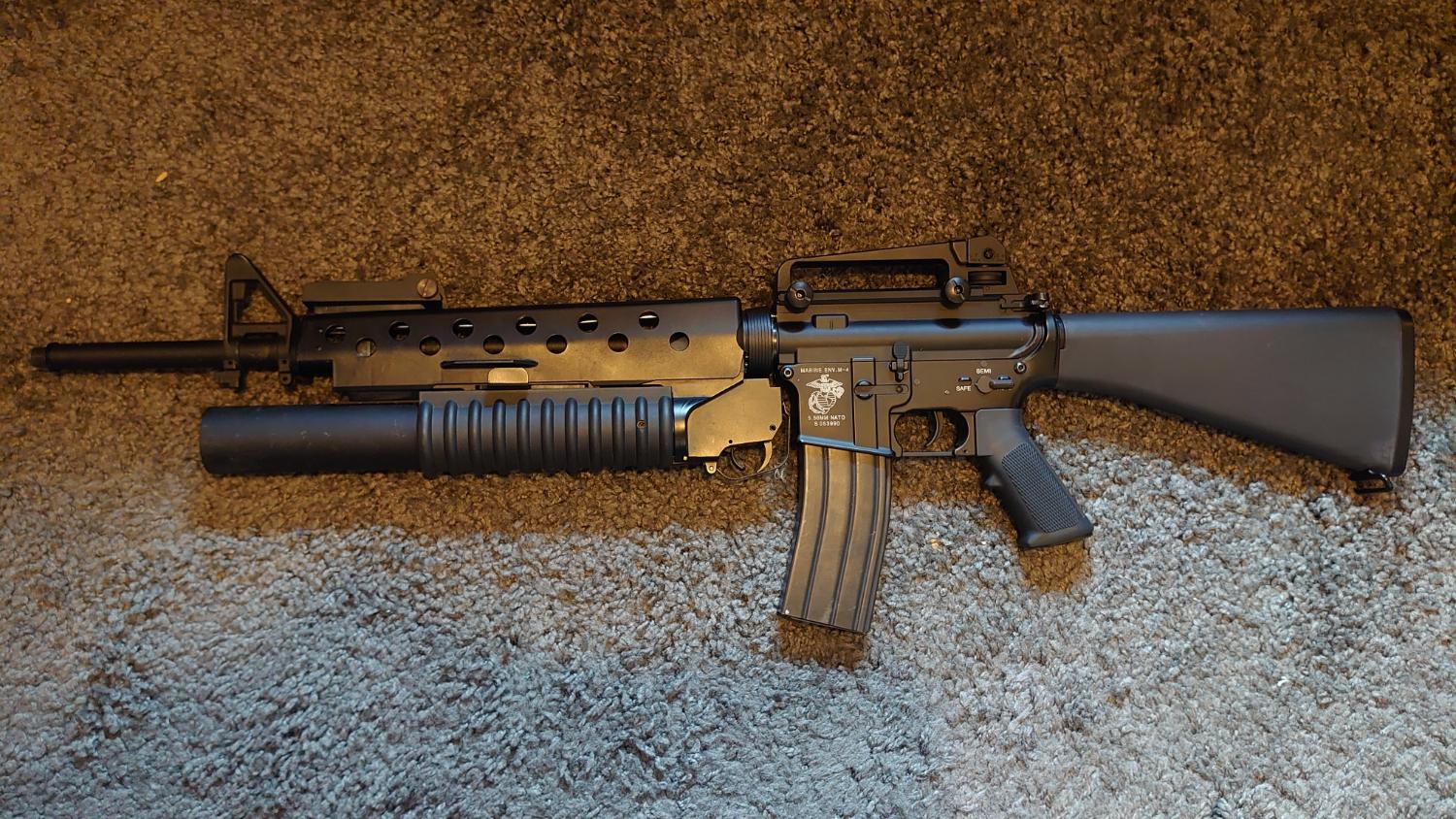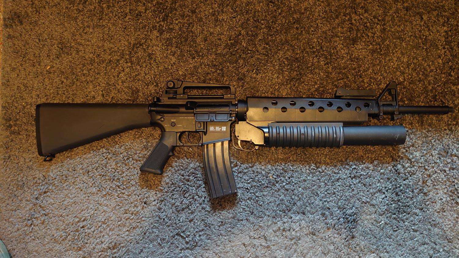 She's missing the original flash hider because I sold a previous rifle with it. None the less in FULL working order. Replaced & installed the original 400fps spring with a 300fps M90 version with another spare in its box.