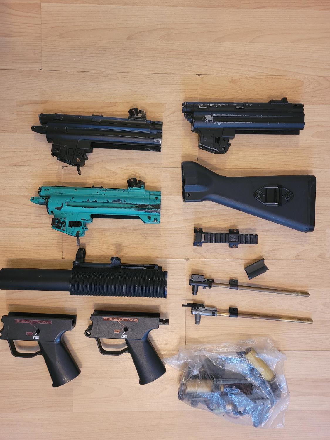 Metal bodies, polymer lowers, SD front end, bag of gearbox (not complete).