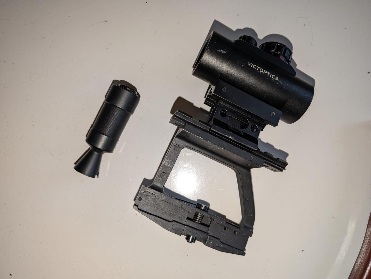 I'm selling it with 6 x Cyma mid-caps that I have painted dark brown to get a bakelite affect, with a PBS-1 supressor and original flash hider. I also have the AK side rail with a Vector Optics scope & battery that I'm throwing in as well as a replica AK sling that's all in good nick. I will sell it on with a hard case c/w pick-in-pluck foam which isn't exactly lined up to the gun anymore, but can still hold it and of course this foam can be bought separately.