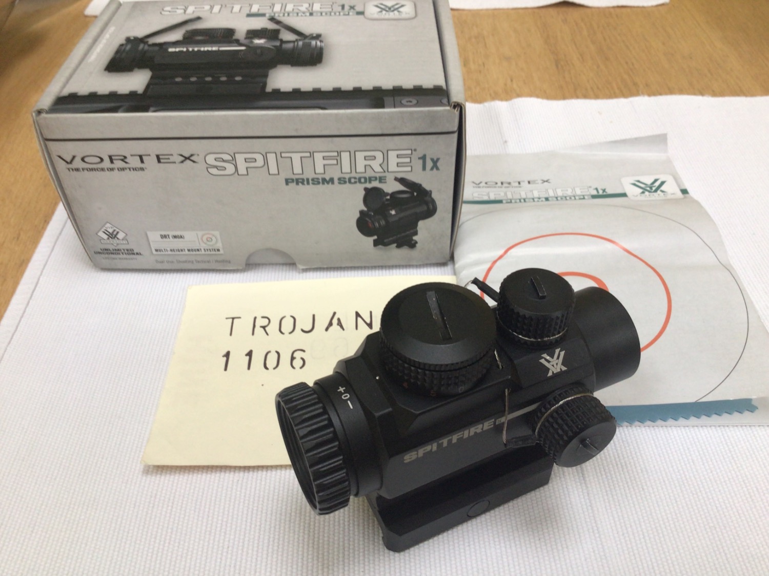 For sale, Vortex Spitfire 1x Prism scope, boxed, as new. This has the red & green option for the reticule.