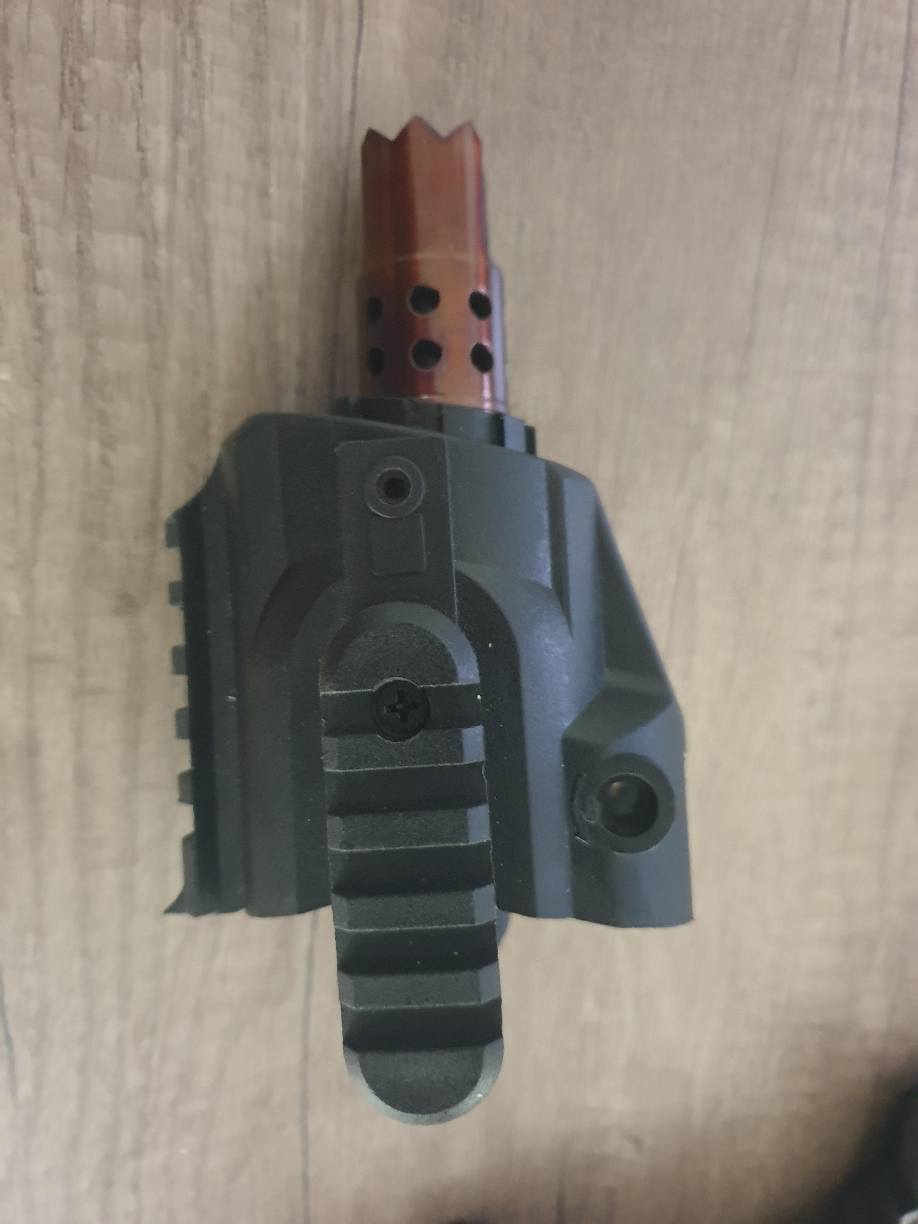 So, the flash hider is glued into the foregrip and it's really, really secure. I don't think it'll ever come off again, which is a good thing as at original design was weak.