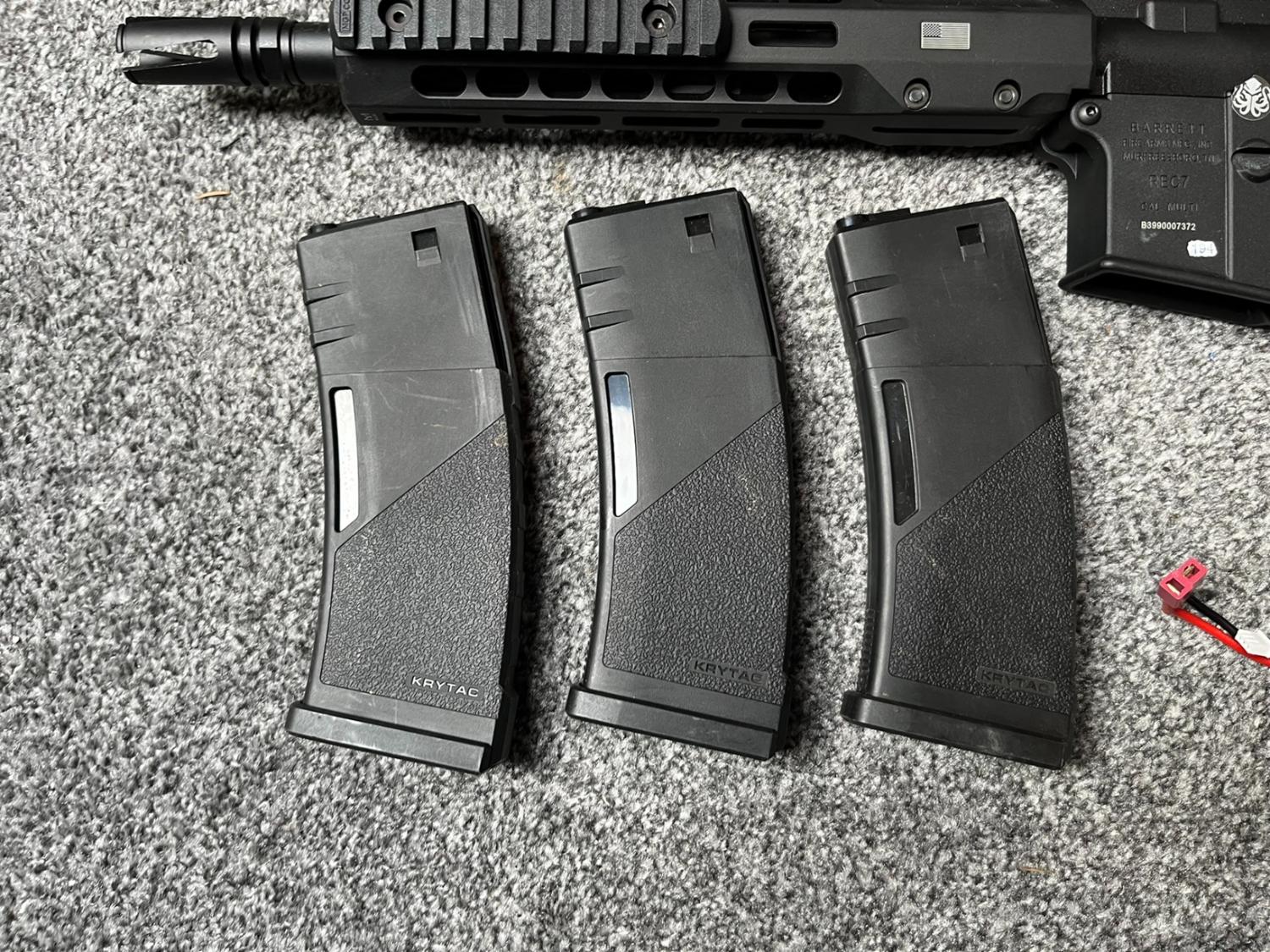 USED - Selling my Krytac Barrett Rec7 AEG rifle tungsten sbr plus 3 Mid CAP Krytac Mags