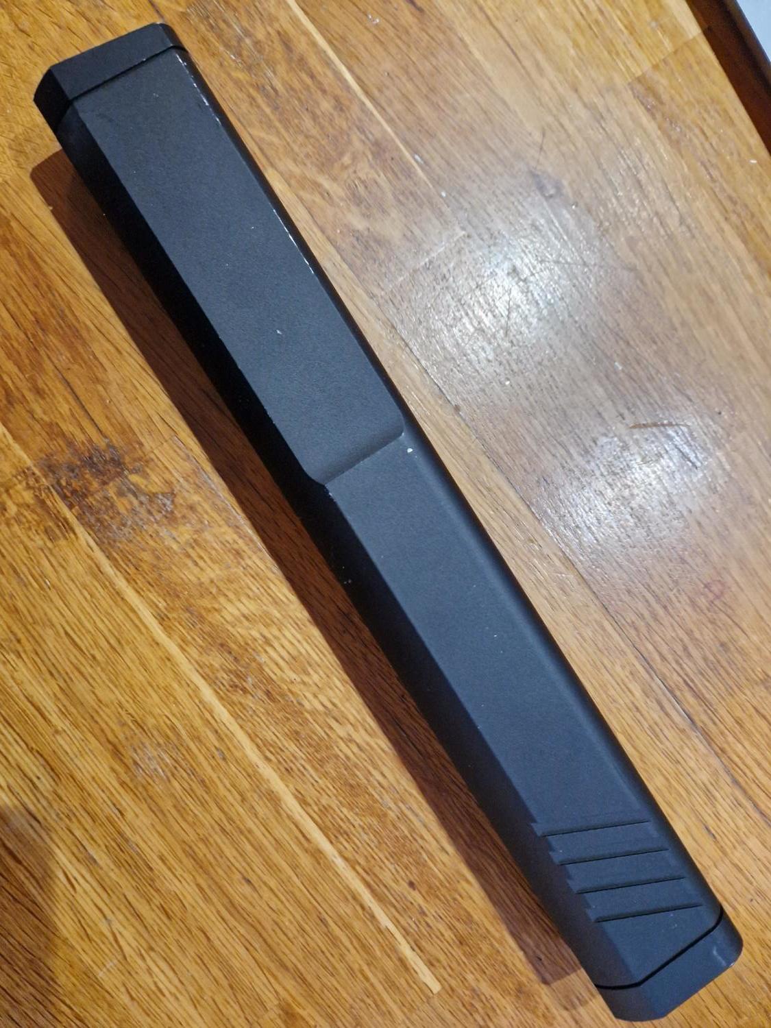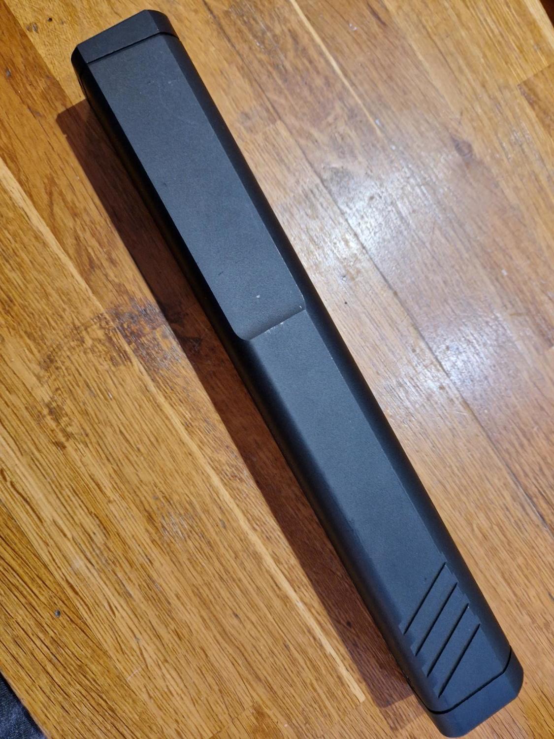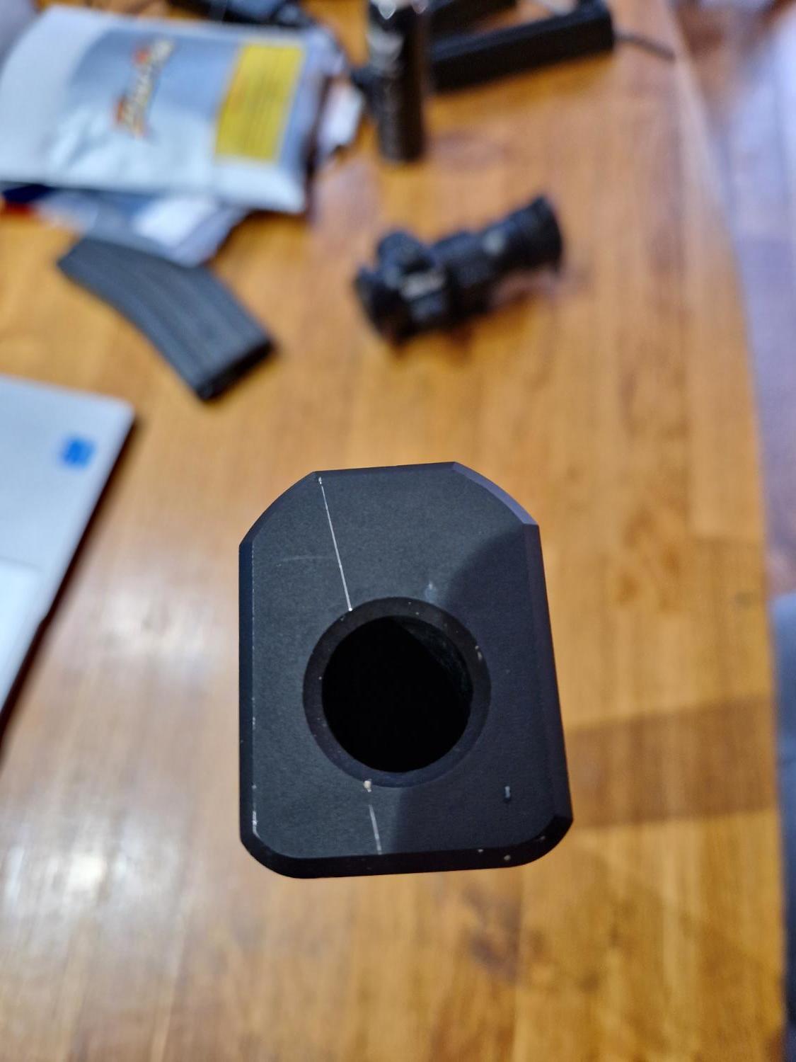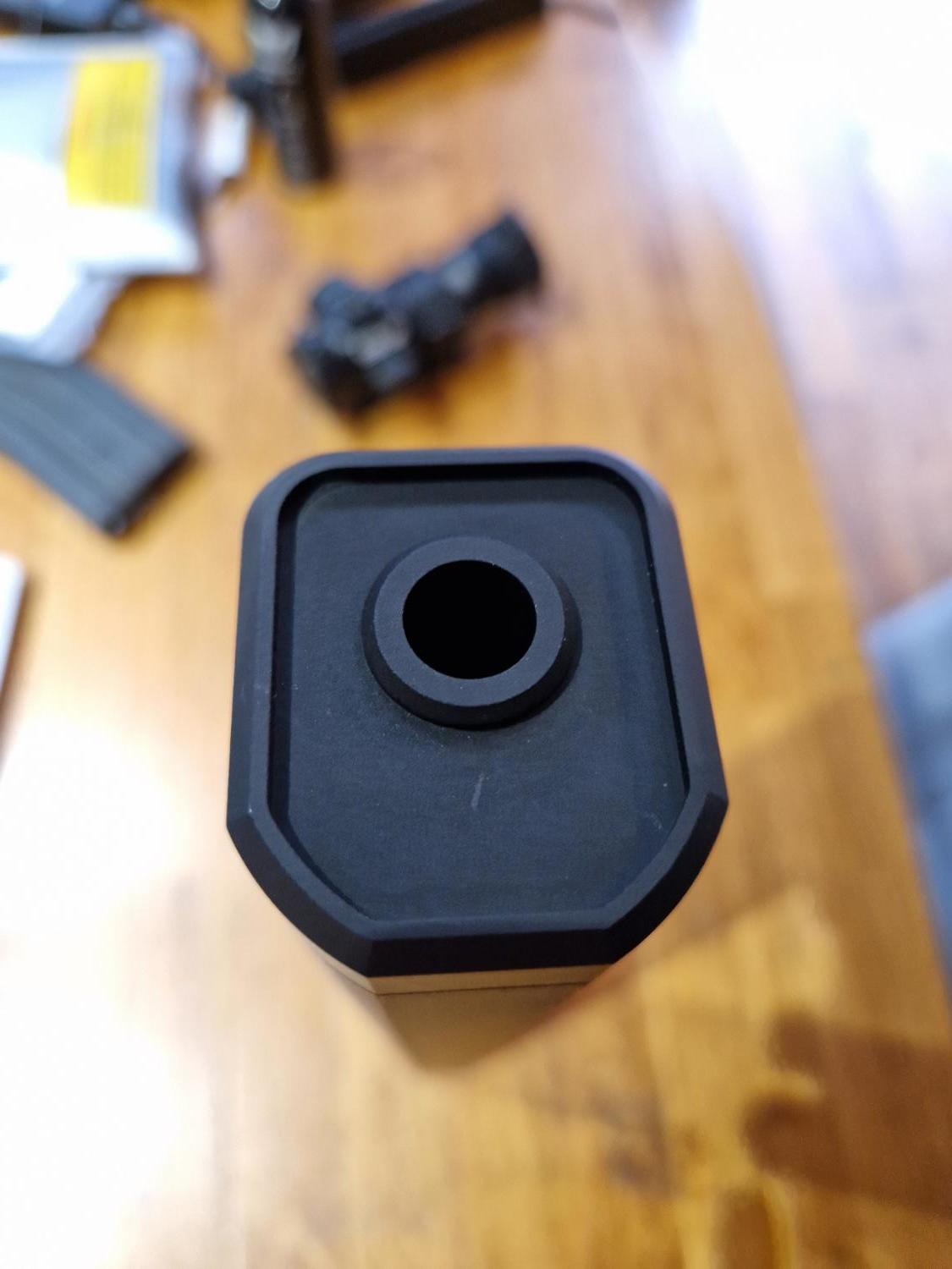 Angry gun dummy suppressor for a Kriss Vector. It attaches to the outer barrel with a grub screw. It'll fit on a 17mm outer barrel.