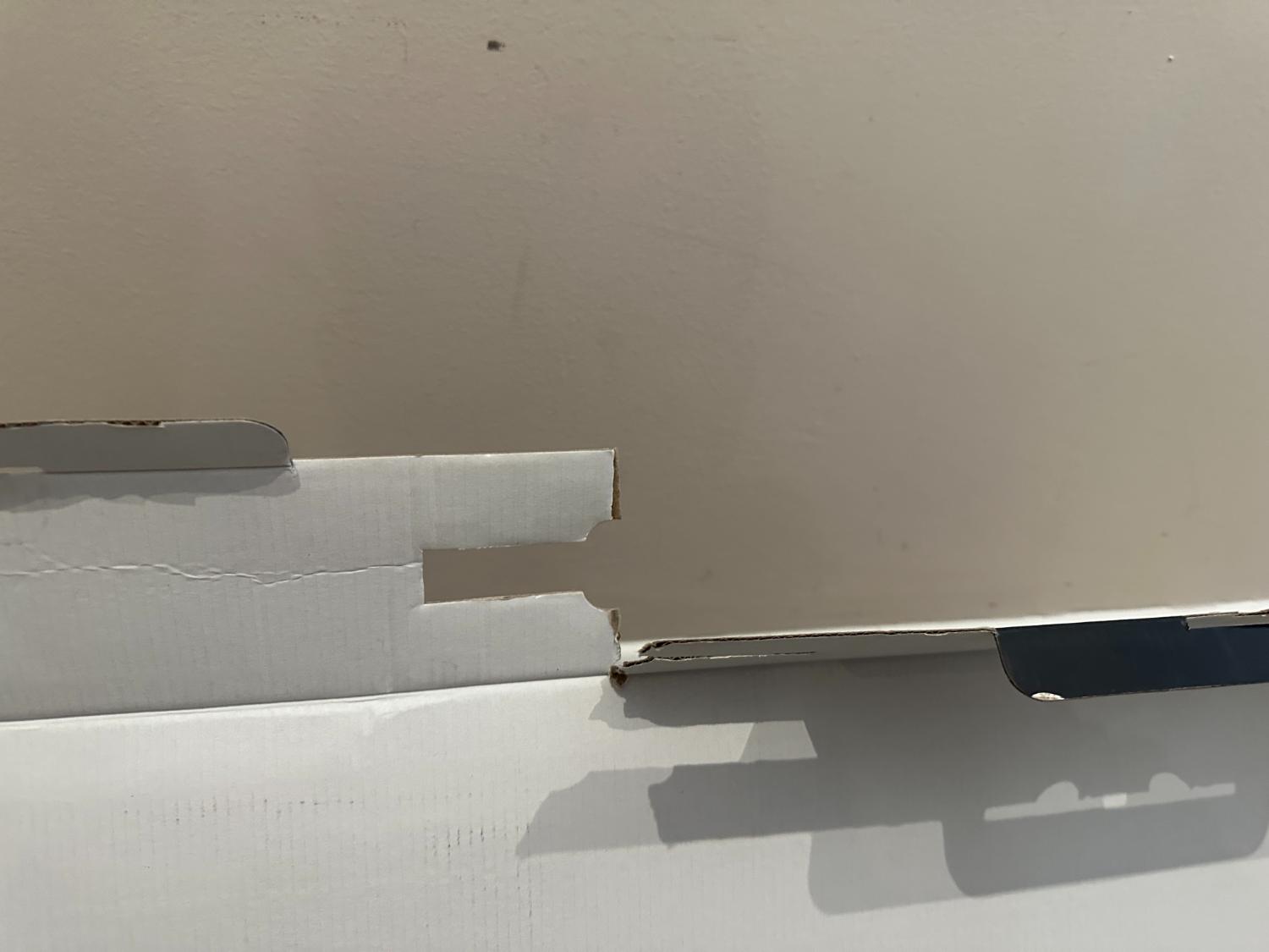The bad bits is one of the clips on the buttpad has snapped but this isn't an issue as the pad is bolted in place when the battery is installed and doesn't affect performance. The box having a rip in the top The bolt catch pin is missing. Has been replaced with a ziptie (you can see this in the 7th photo) but still works perfectly.
