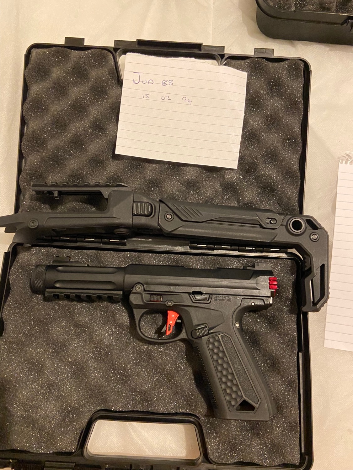 Action army AAP 01 Upgraded heavily , upgrades listed on image ! Hasn’t been used since it was sent to the tech for maintenance and new hammer set £330 in parts alone grab a steal With 1 extended mag £325 Collection tamworth area Or delivery dependant on location
