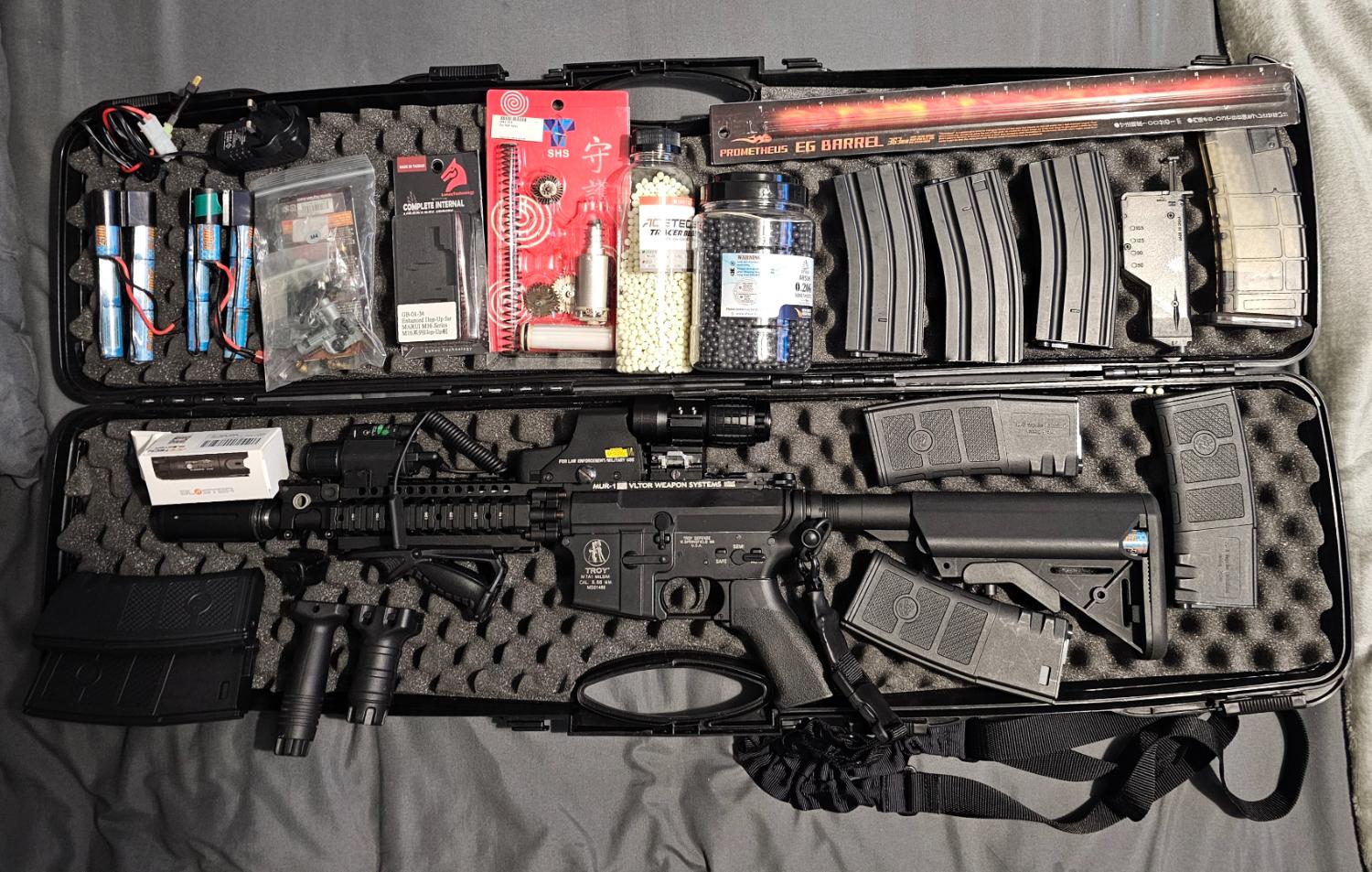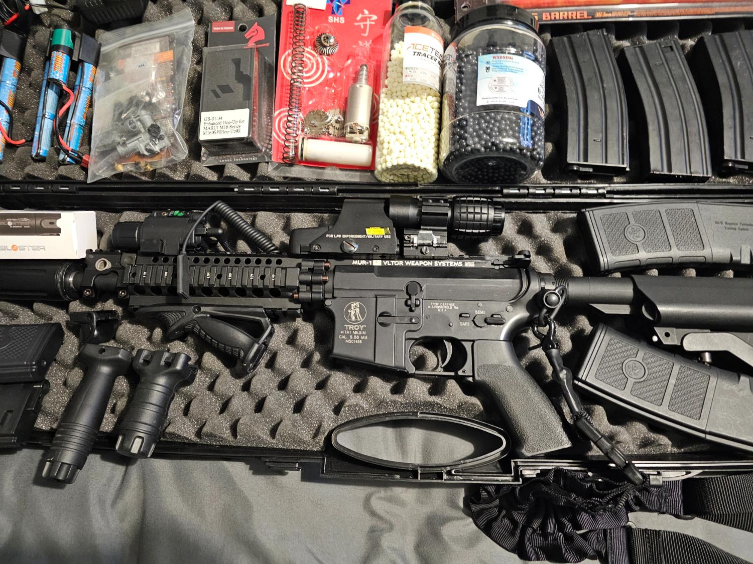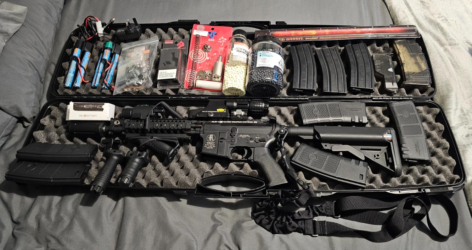 G&p mk18 mod 0 fully upgraded with promy tb barrel purple nub and hop up, internals changed to shs gear set and motor upgraded. Last chrono was 348 All original parts provided will be included.