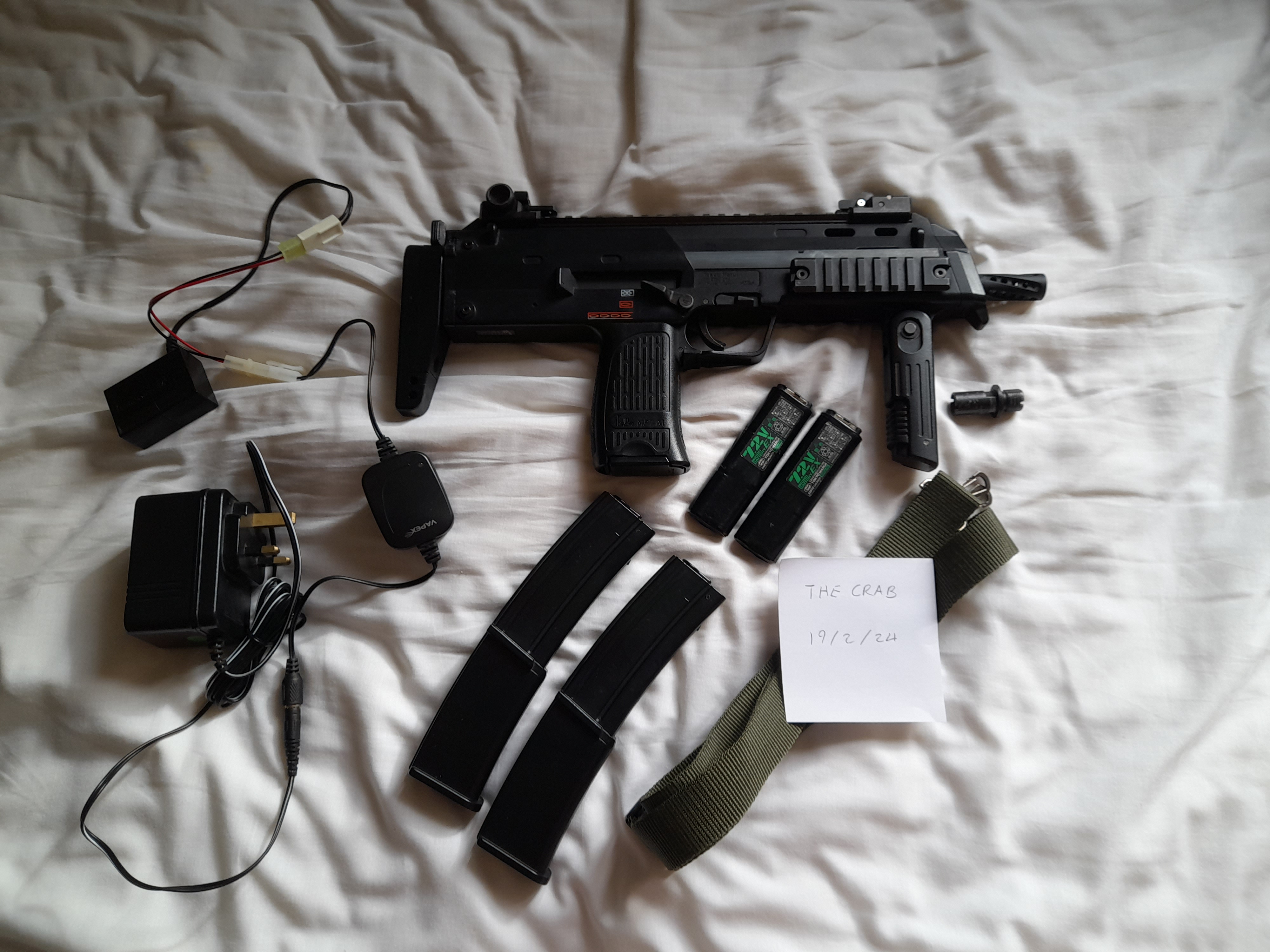 The bad news: Batteries won't charge, charging handle return spring not working (it doesn't move unless you pull it though), may require a new pad for the stock. No box or original flash hider.