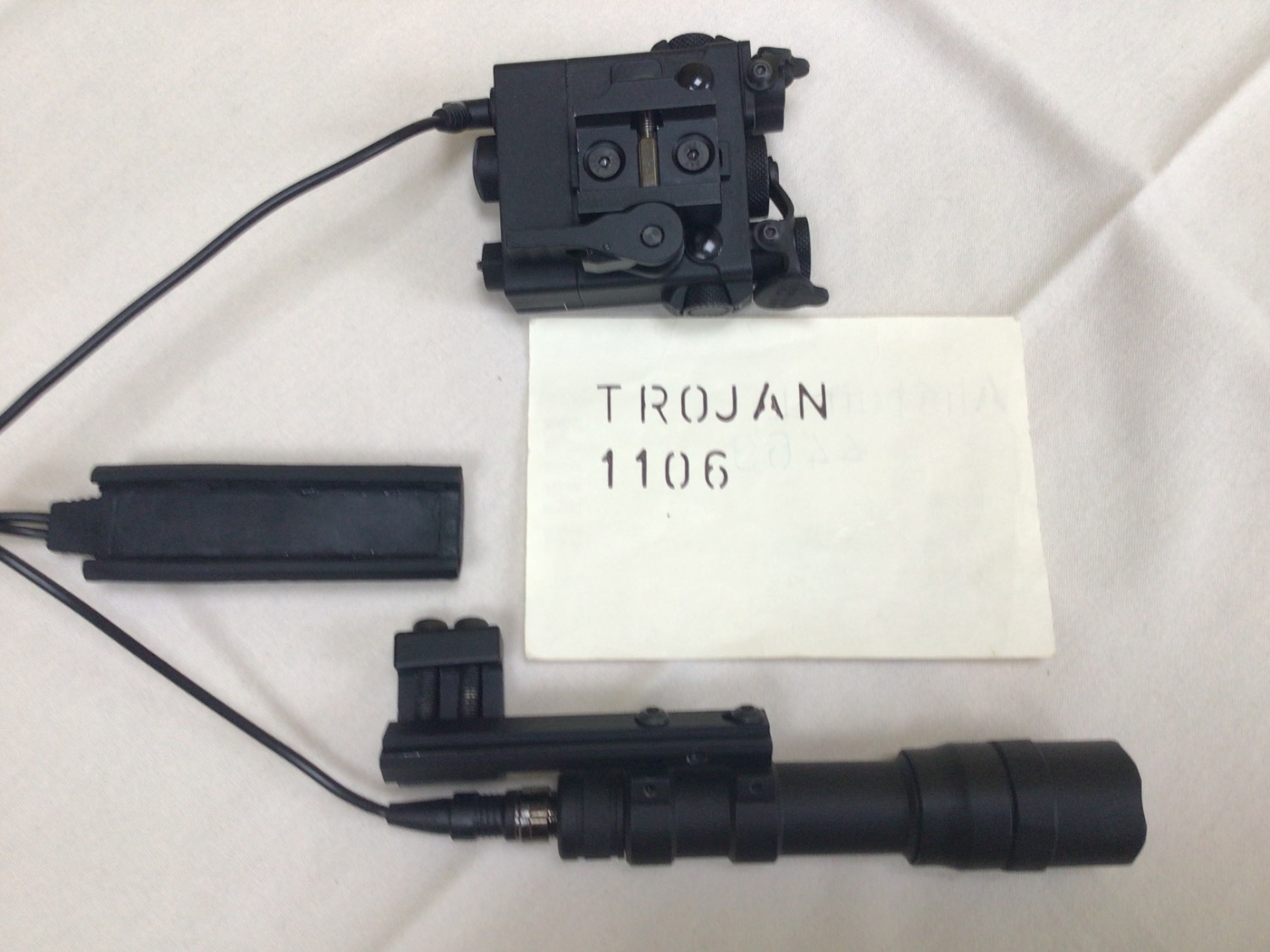 For sale, Wasdn dbal, Wasdn Scoutlight, clone Haley mount and clone Surefire double switch. Dbal has red laser & strobe, scoutlight is momentary on via the double switch. In very good condition, £75 all in posted and PayPalled.