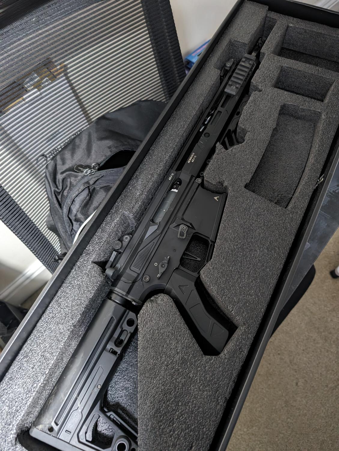Double Eagle Aeronox ax15 all metal high quality M4 rifle with wireless Kestrel V2 fire control, you can control everything from an app on your phone, from Fire mode, fire rate, fire switch layout selection, pre cocking, gear sets, realism mode sniper mode, lots of other options. Upgraded with laylax tightbore inner barrel, retro arms hop unit, maple leaf bucking and omega nub. Has front grip added and included. Some very minor marks from the couple of skirmishes used at,not actually been used that much due to injury and having to use light rifle. Comes with magazine, retail box inc all instructions. Pick up from me near Skipton or at stealth woods or level 2. Sight, sling and suppressor in pic not included, it's just to show how I set it up for the times I used it. £240