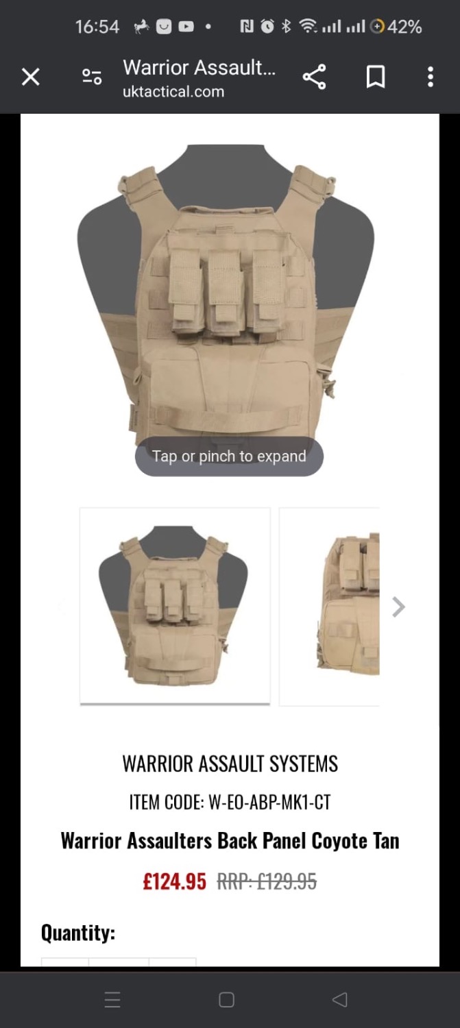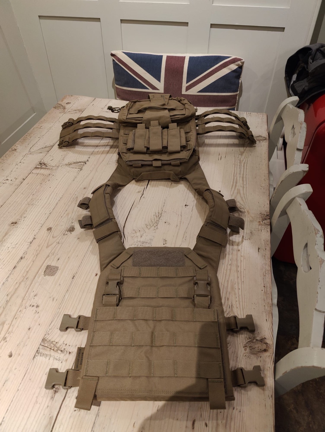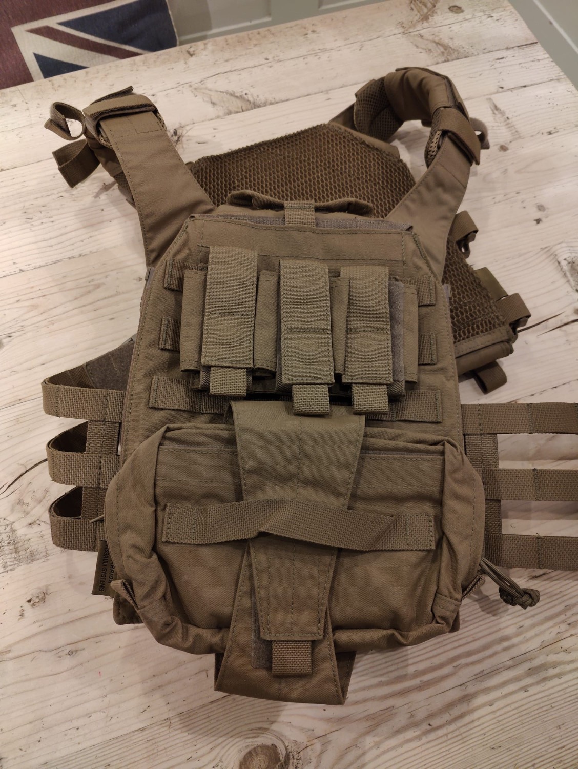 Warrior assault systems recon plate carrier in coyote size medium to large. Comes with back panel. One small chip out of one clip but otherwise in good condition.