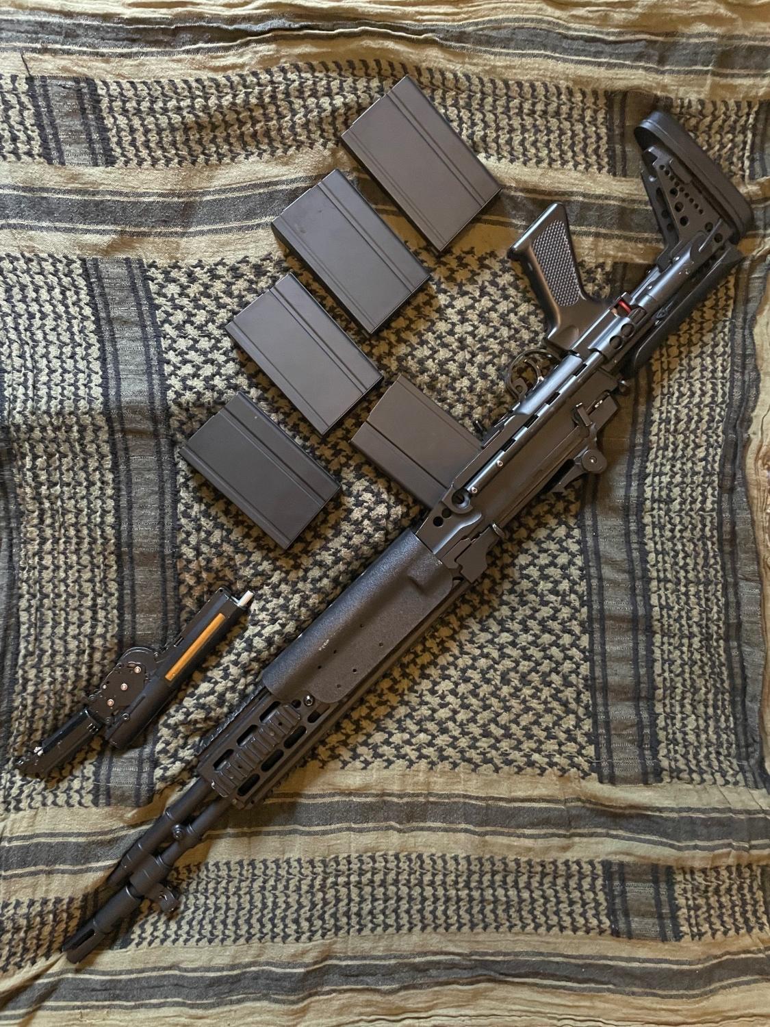 Selling my cyma M14 EBR. I got this as a project to turn it into a DMR but don’t have the time. It could do with a good service and the back half of the rifle is a bit loose. It looks like the gun wasn’t put back together properly last time it was opened.