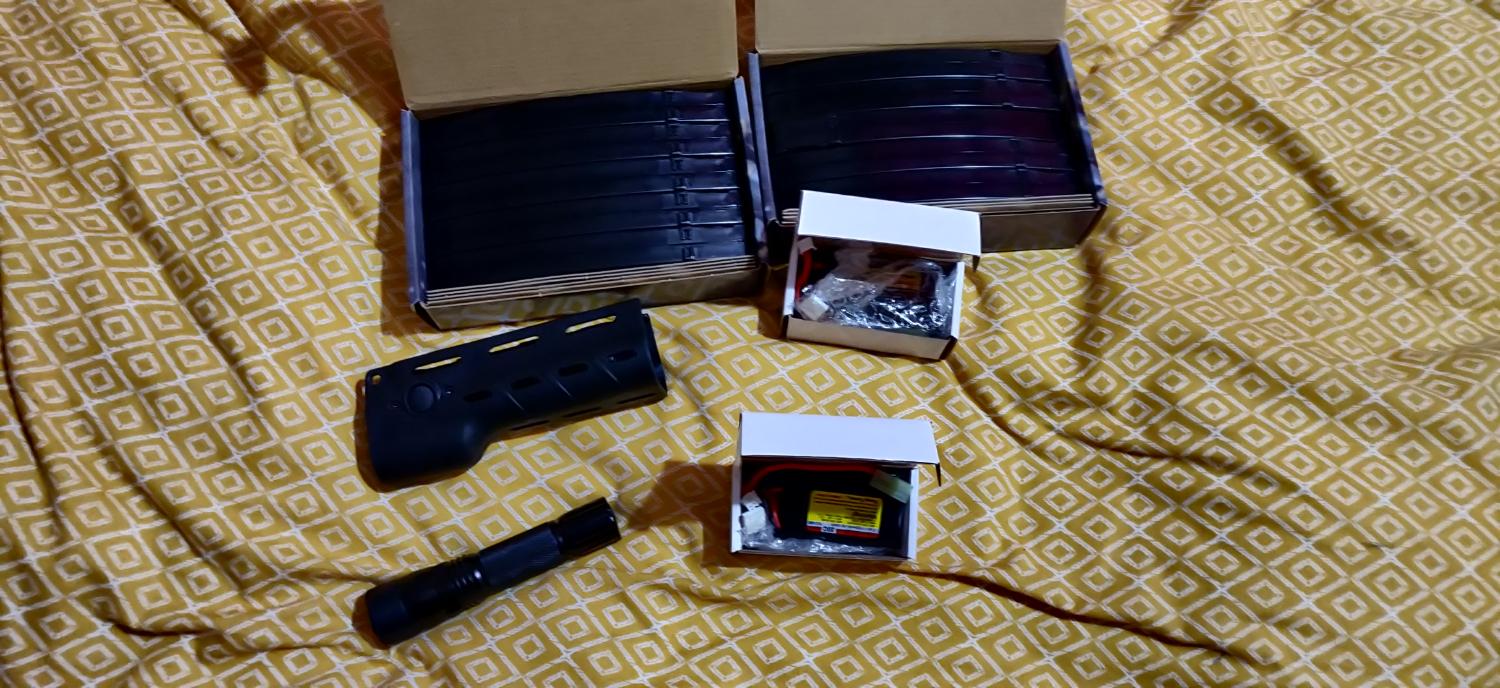 10x mags, torch+torch handguard, rail, 2x batteries