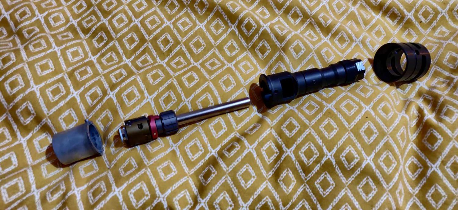 Selling a Maple Leaf ML-44 full barrel setup. Consists of a Maple Leaf coated brass 100mm inner barrel, Maple Leaf 70 degree Super hop rubber, Maple Leaf VFC AR hop unit, Maple Leaf ML-44 outer barrel base, extension and flash hider, VFC alloy chamber.
