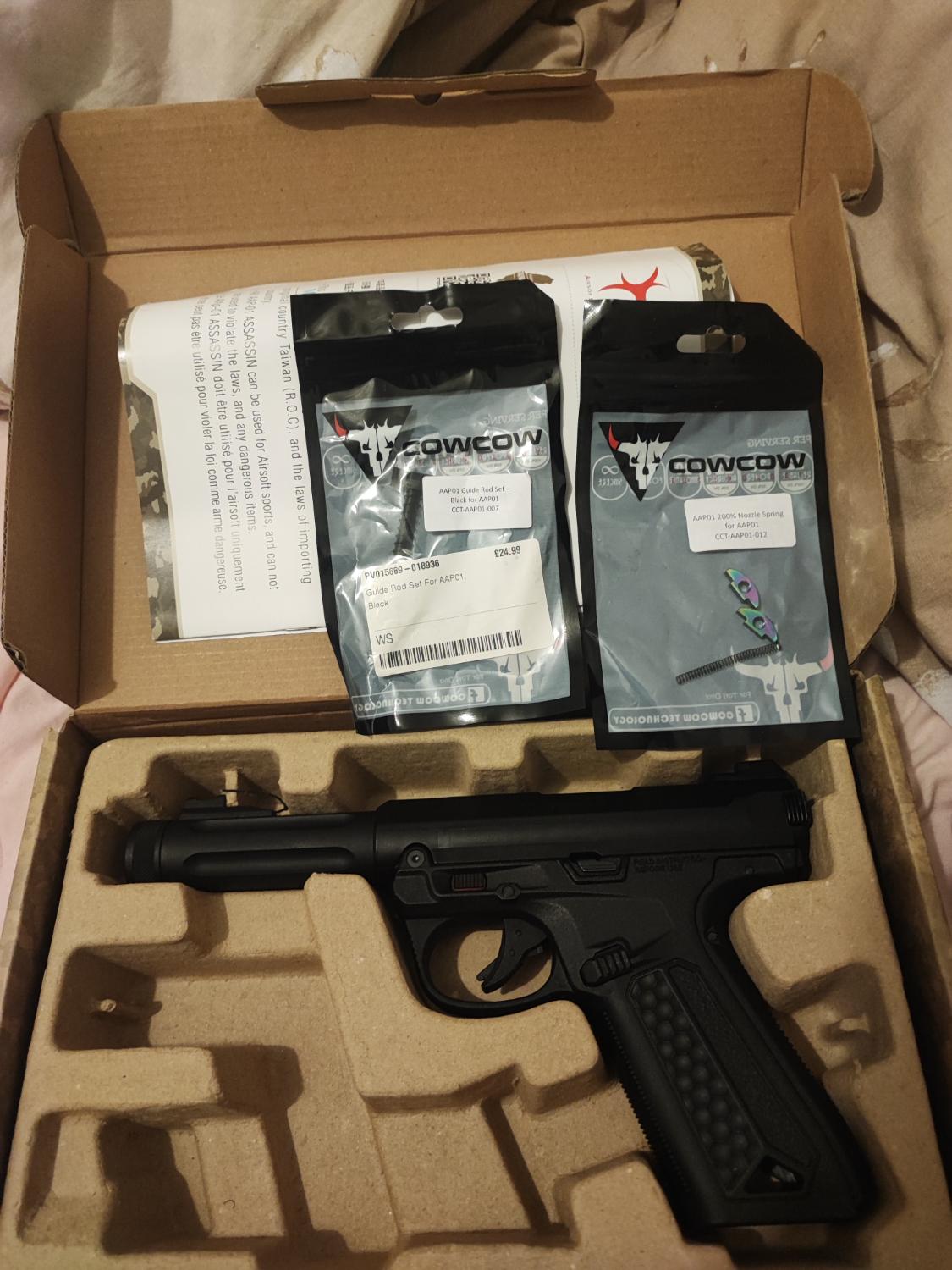 AAP-01 with cowcow 200% nozzle return spring and Cowcow guide rod with short stroke buffers. Comes with original parts to.