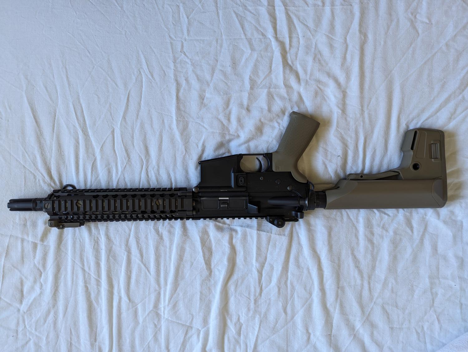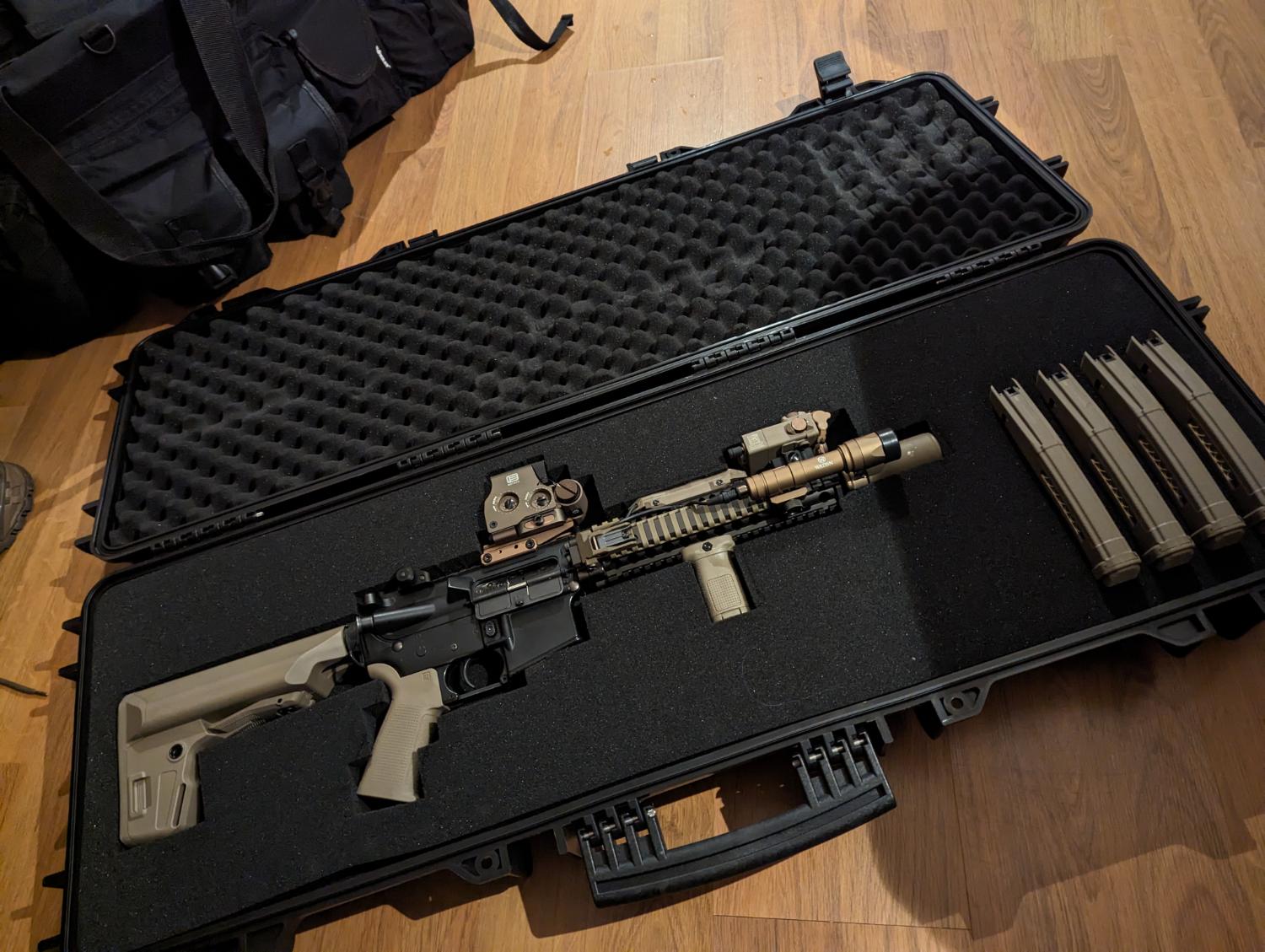I've put a photo up of how I've had it set up in the past, please note it'll come without attachments as these have now ended up on my other MK18 however this should give you an idea of how it can look. Will not come with Case but it's the only photo I had where the mags are ok show too.