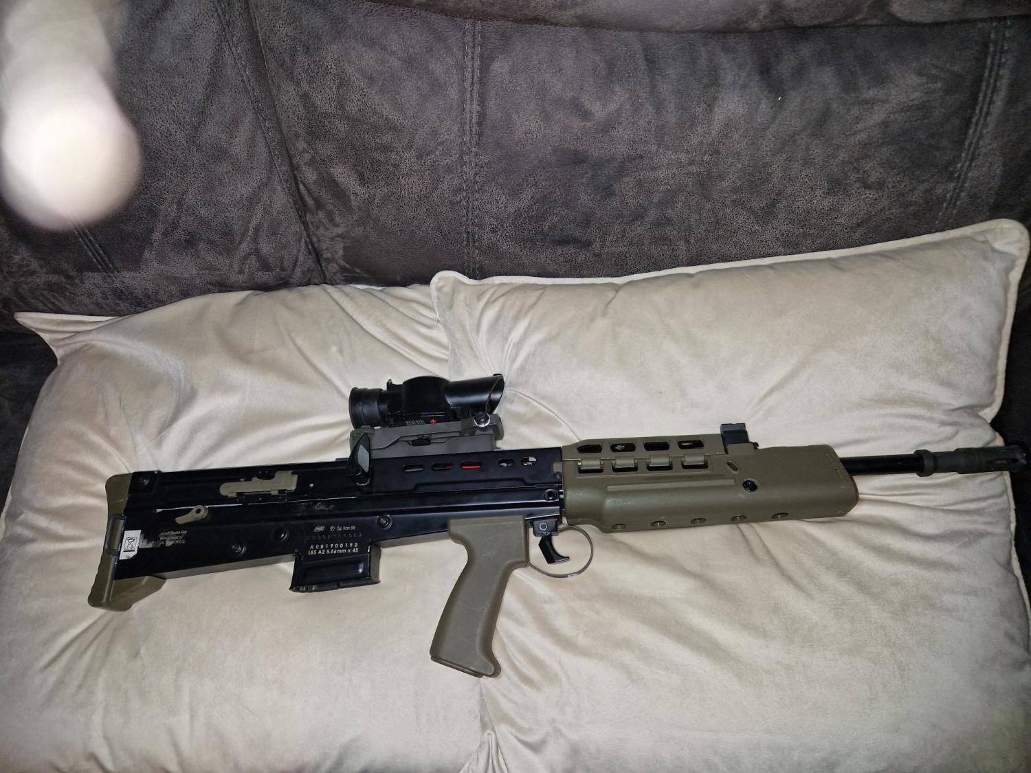 Selling my l85a2 with ARES SUSAT. This has been relisted due to failure to pay. This comes with a new wiring loom as I nipped one of the wires changing the spring tension as its adjustable. Scratches on it as depicted any more info please message me.