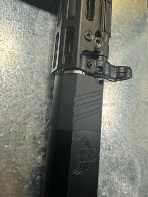 I got it in a trade and it was kitted out with an m-lok foregard and an Osprey suppressor. I'm not sure how the suppressor was attached (epoxy maybe) but the suppressor is firmly glued to the gun and I've not been able to remove it.
