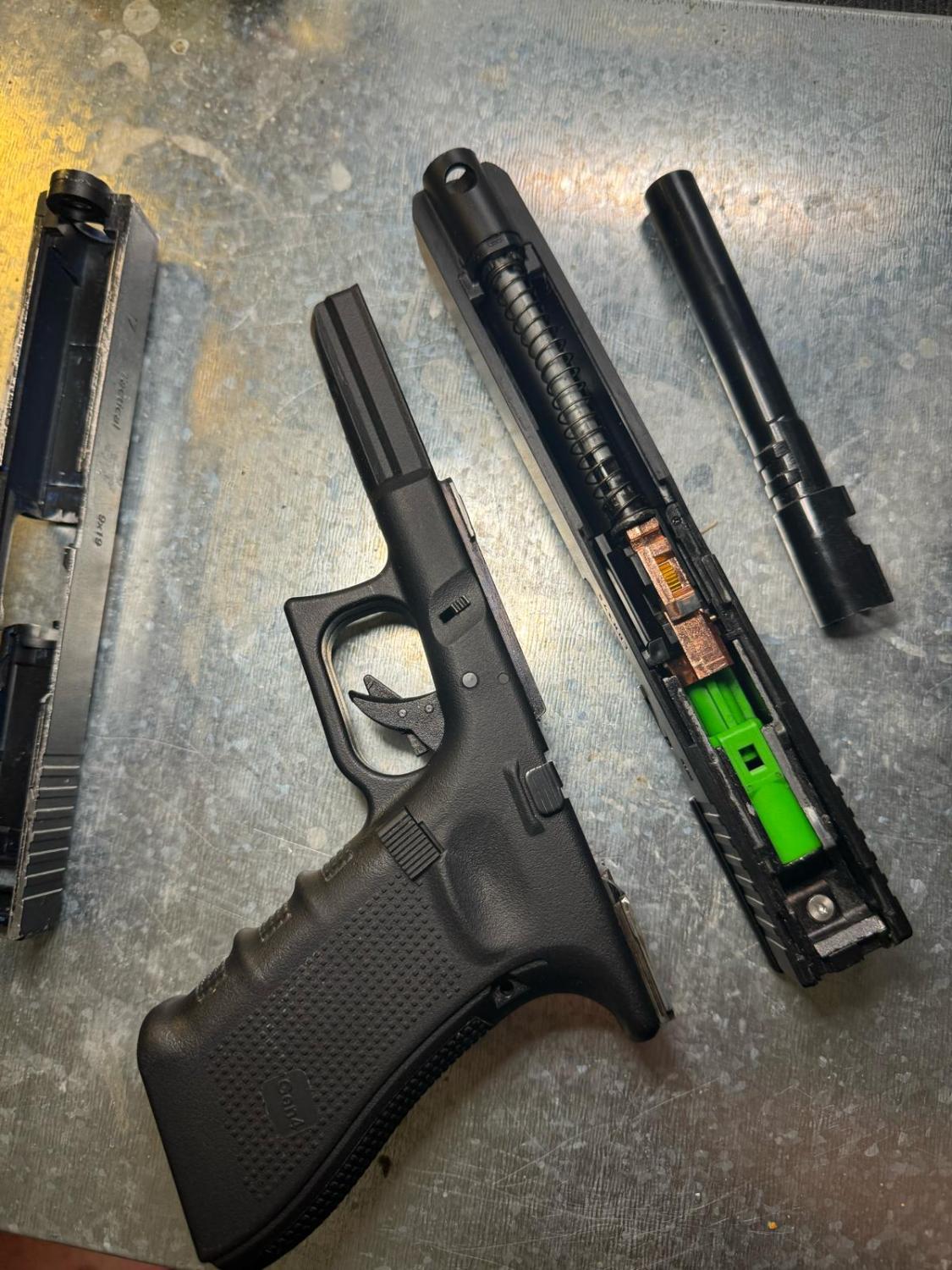 it has a TM Glock 34 slide and barrel, as well as the original WE G17 barrel and slide. Has a Maple Leaf barrel and hop unit, and includes all the externals (extractor, sights, RMR plate etc)