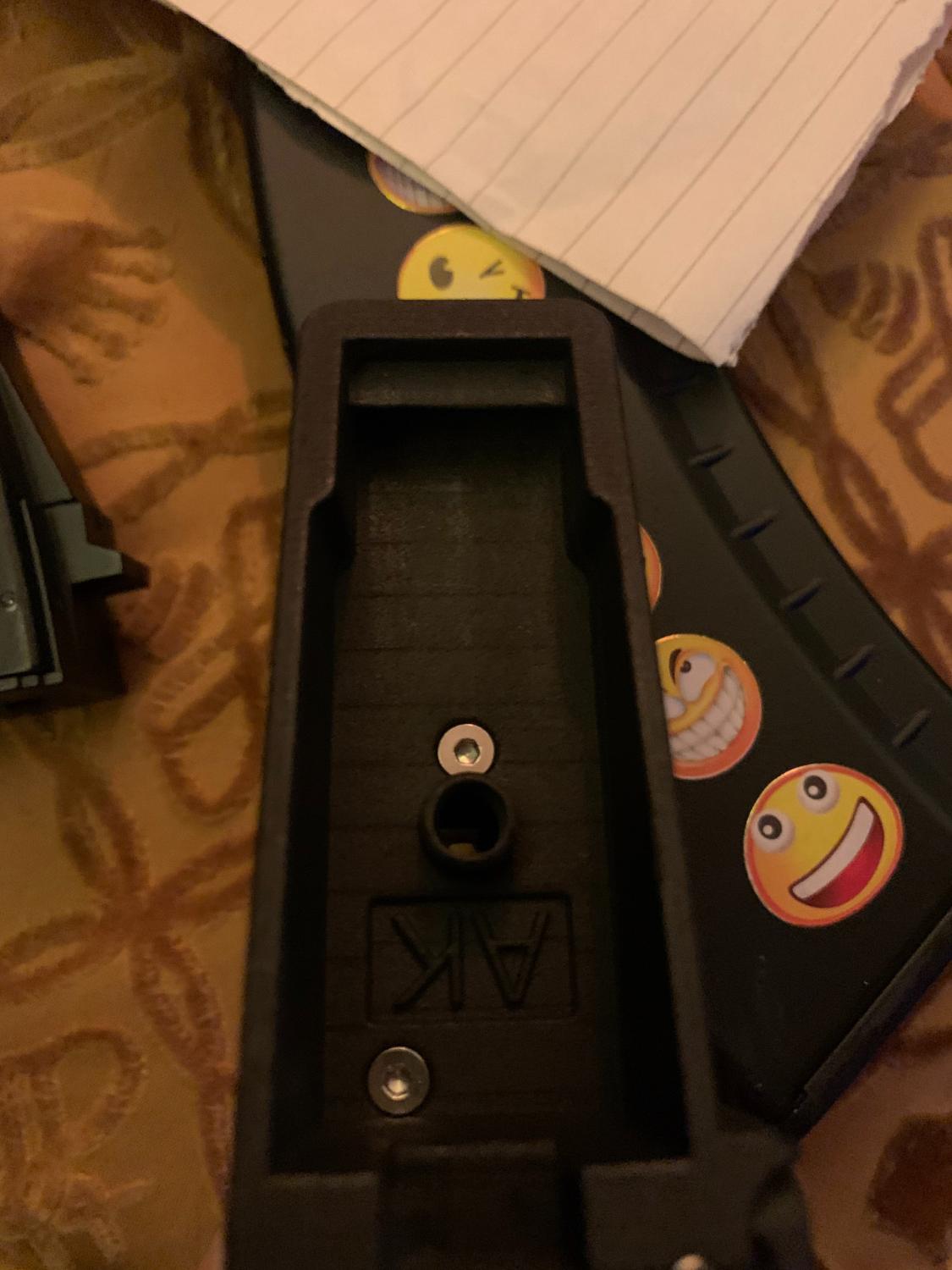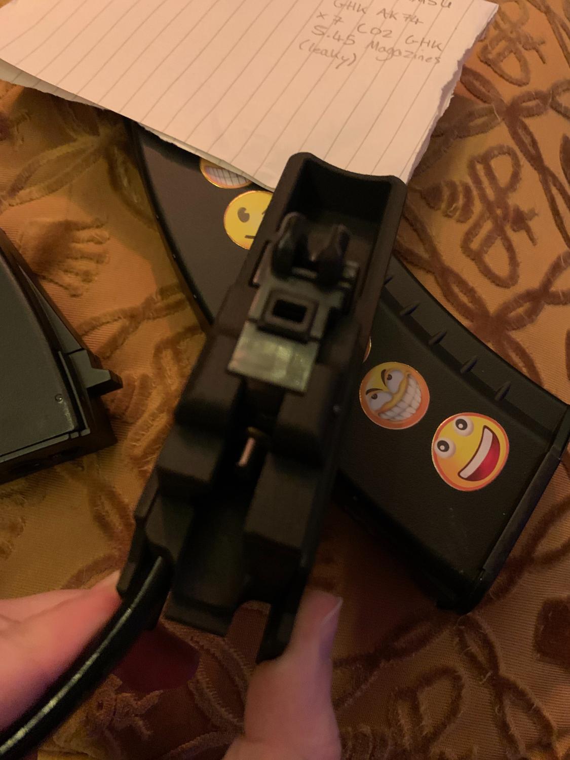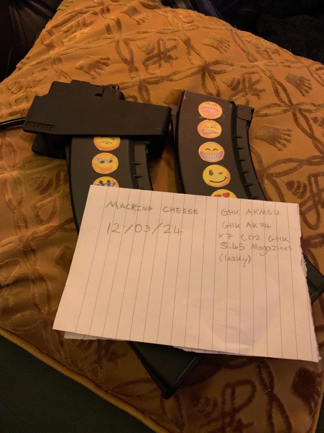 Comes with two Cyma 7.62 plastic magazines with some silly stickers (easily removable)