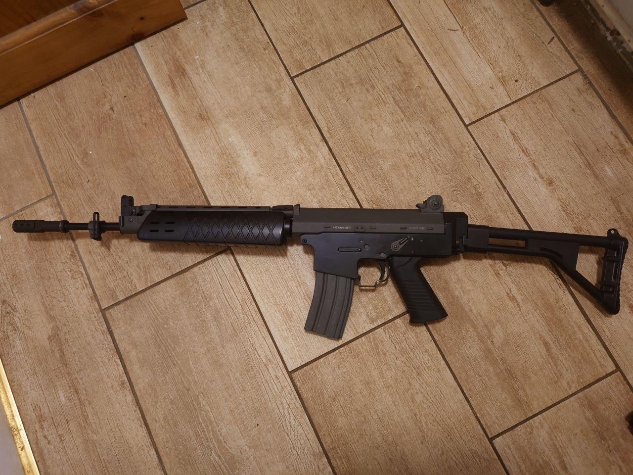 Selling my G&G FNC/AK5 (Model number GF 76-L / GF 85-L). Bought from new about 5 years ago and has maybe been fielded once or twice. Mostly just a wall hanger as seen in the pictures by little to no wear and tear. Soldered to deans; inside the hand guards. Due to peculiar German airsoft law this is laser etched with the shops name on the side (Kotte-Zeller.de) and was physically restricted to semi-auto fire only by modification of the selector plate. I rectified this but consequently the selector is a little stiff when changing from semi to 3 round burst (note this doesn't actually fire 3 round burst). I will include a spare selector plate in case this repair fails in the future. From memory this RIF is firing around 260fps with .28s.