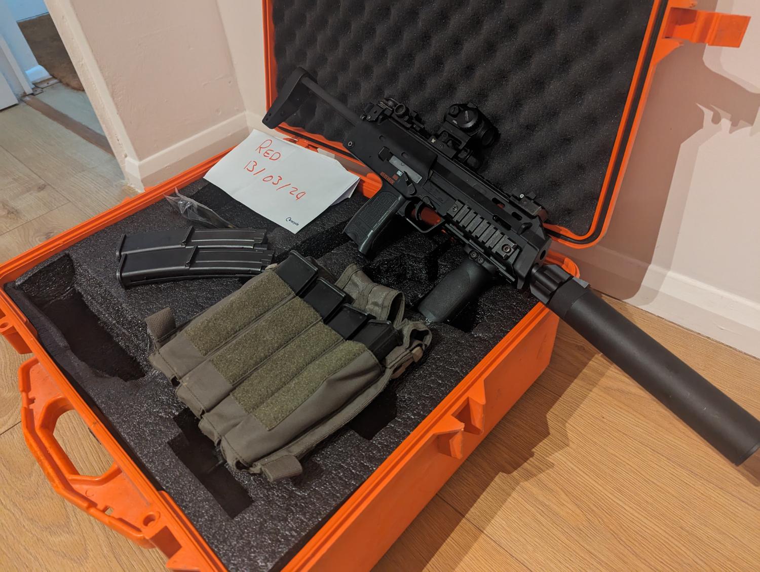 Price includes the pelican case and 4 stack mag pouch for plate carriers. Does not include the vortex sight (can add at an additional £110)