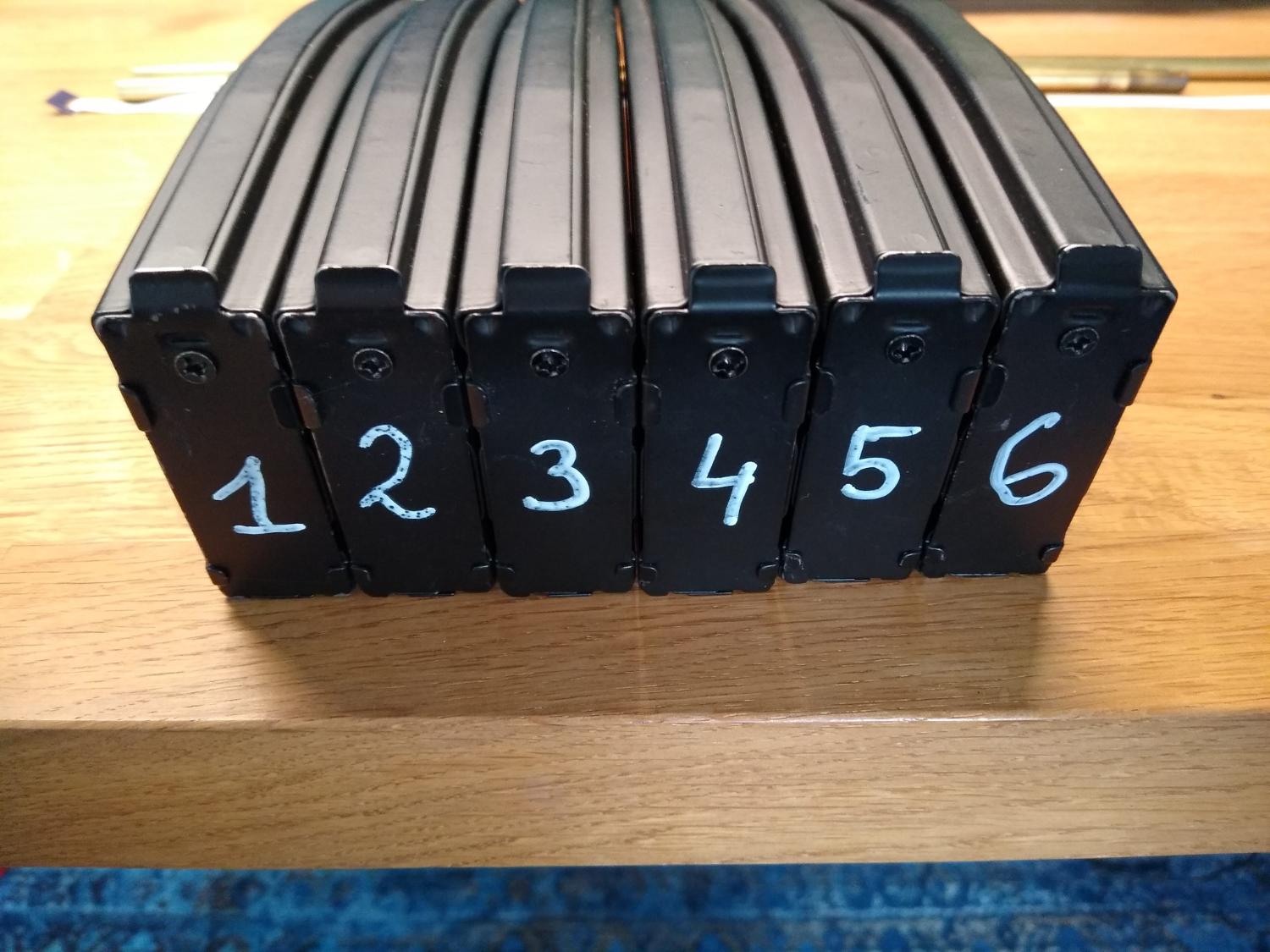 6x metal mid-caps, spares and repairs, springs have been changed but don't perform great, keep about 80-90 bbs each, one has plastic cracked, metal shells in good condition