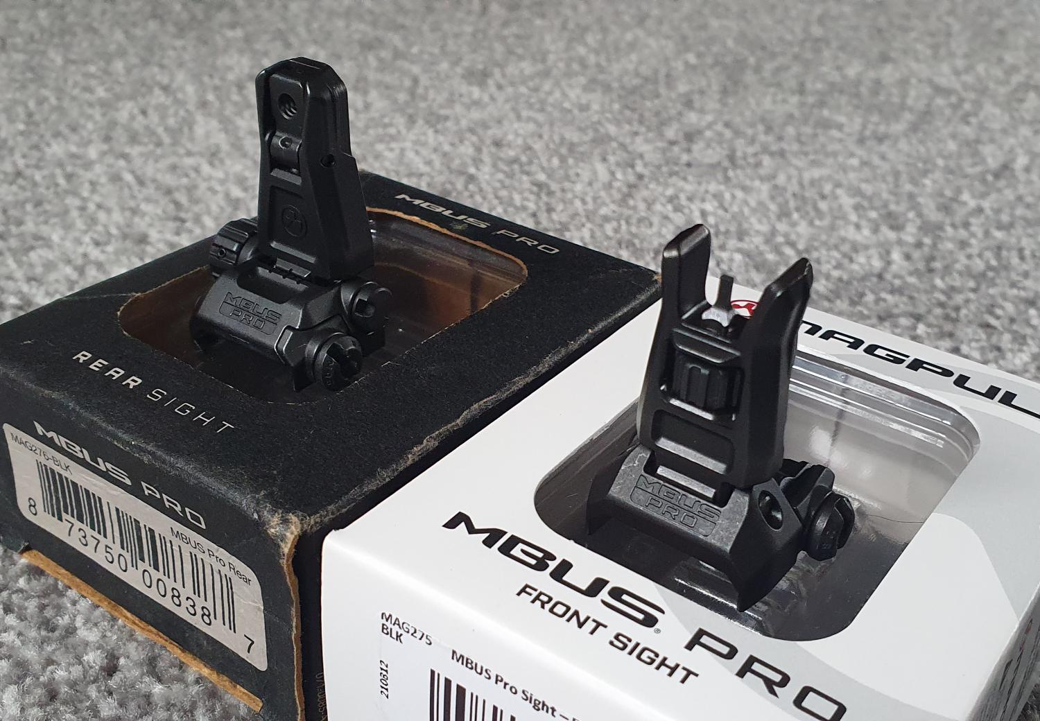 Genuine Magpul MBUS Pro back up sights, front and rear.
