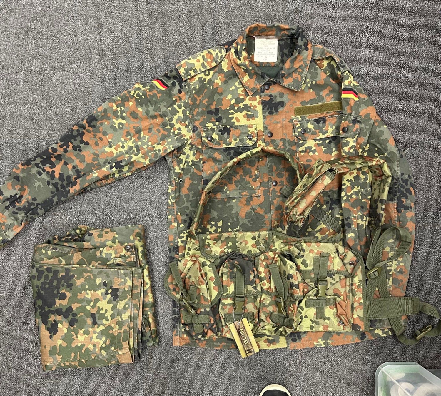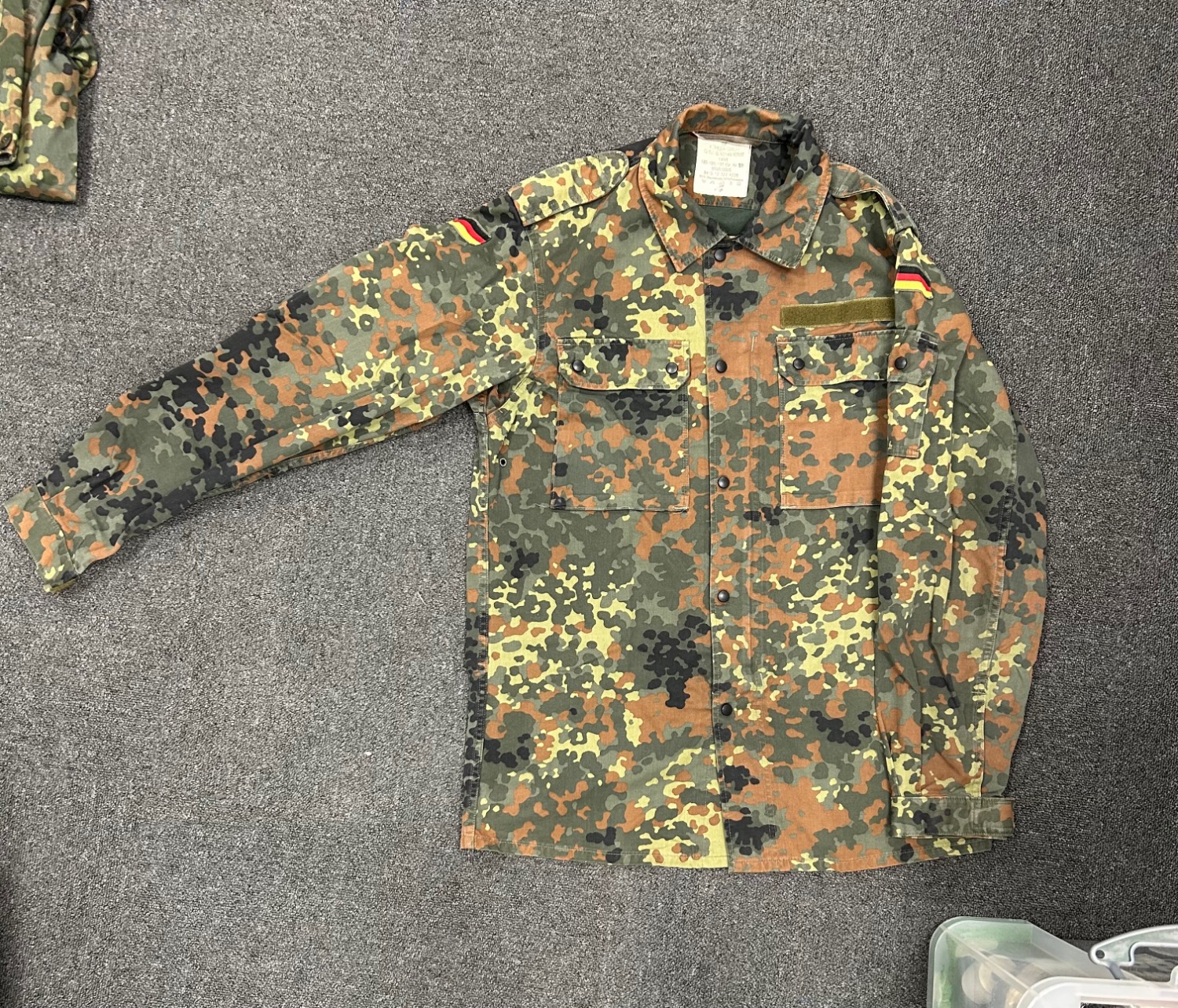 The top and trousers are both genuine surplus - the trousers have some light dirt marks around the bottom from general use that may even wash out.