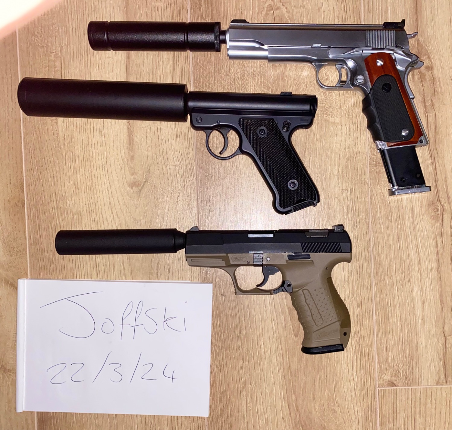 middle: ASG MK1, 1 leak free standard mag, original outer barrel and sight included but as fitted it will have a custom suppressor fitted (believe to be a VZ61 suppressor originally? I do have another that hasn’t been machined so if you need confirmation), rear sight block fitted.Stock internally £40 posted
