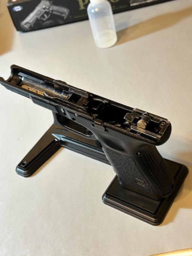 It's a long embarrassing story but I tried to put the TM frame internals into a Guarder frame. I have done this before with Guarder Glock 17 Gen 2 and 4 frames and encountered little or no difficulty. However the Glock 19 frame was anything but a straight fit. When I finally got them in, the slide stuck and I had to hammer it off. I tried again - first removing material from the inside of the frame and trying the slide again - and again and again and again, finally damaging the Guarder frame and breaking the TM slide. In the end I gave up, put the parts in a box and sold the magazine.