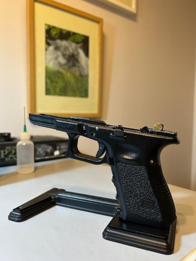 So what I have now is a complete set of internal parts including bbu, outer and inner barrel, front and rear sights etc - everything except a slide, frame and magazine. I still have the original Marui frame which has a slight mark next to one of the assembly pin holes that you would probably not notice.