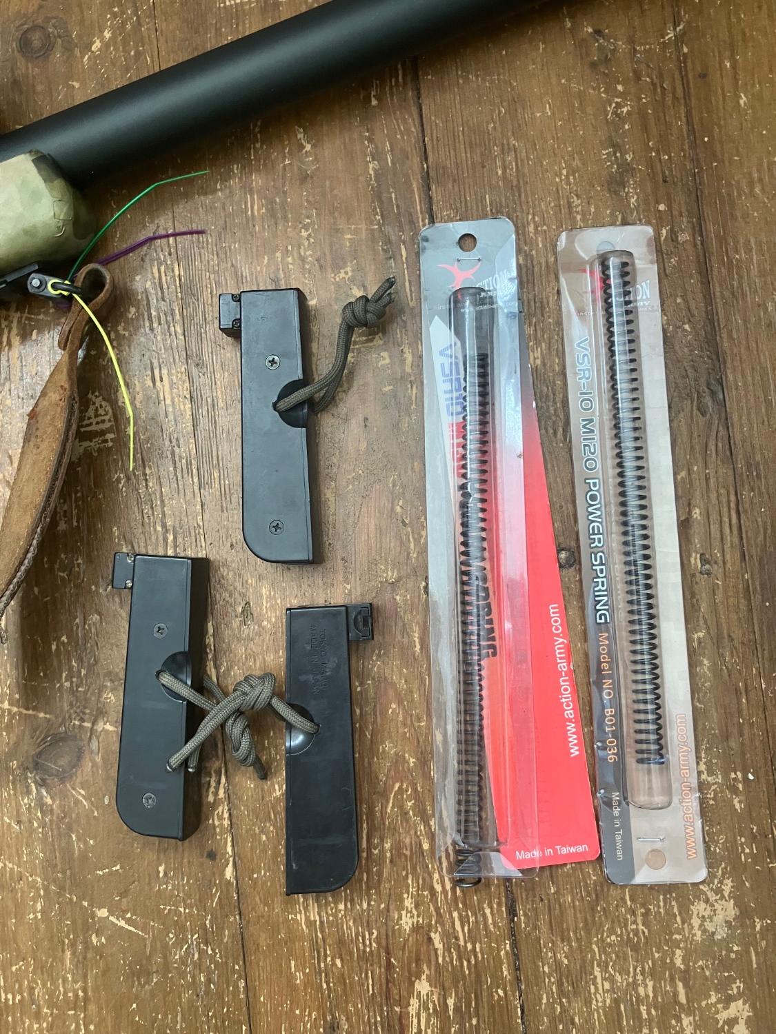 Also comes with x3 modded mags for easier reloads and two extra spring and the big scope and a gun bag.
