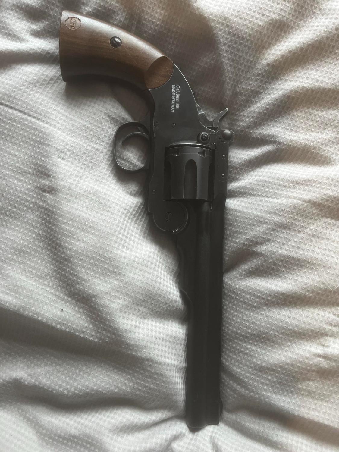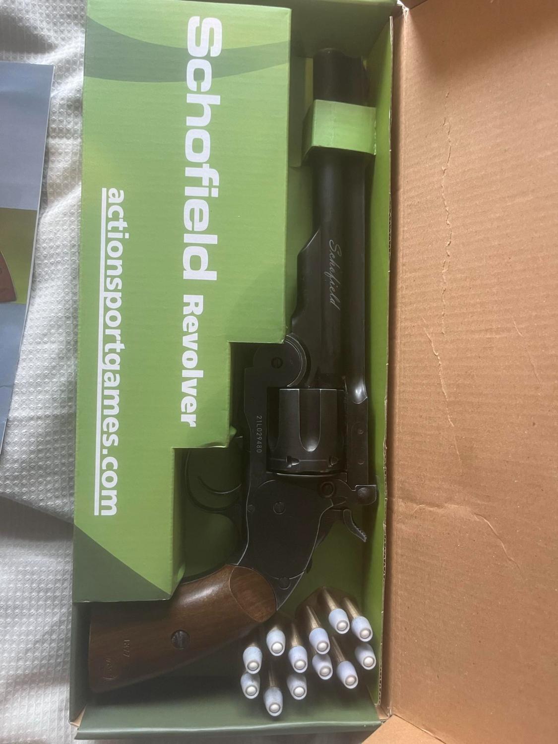 Selling for a friend, although this used to be mine. It's only been skirmished once by me and has been sat ever since in its box so it's in great condition. If you're a sucker for revolvers or the old west this is a great gun to have in your collection as it looks and feels the part