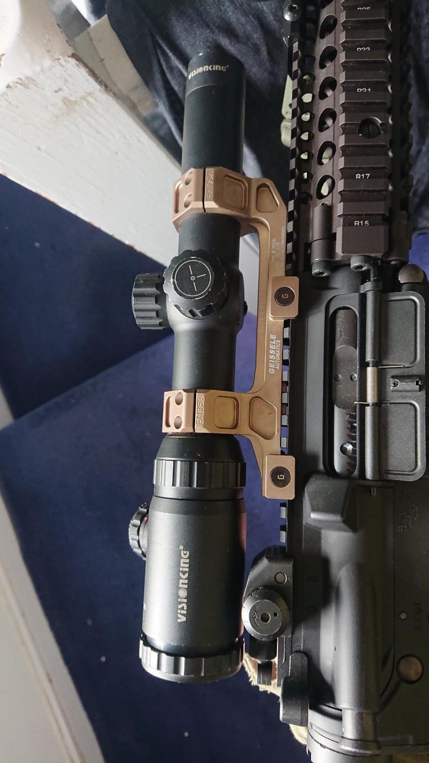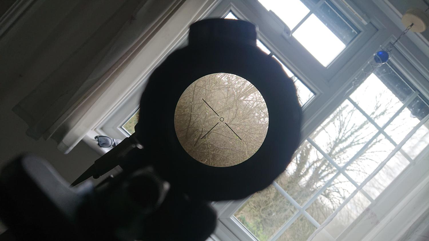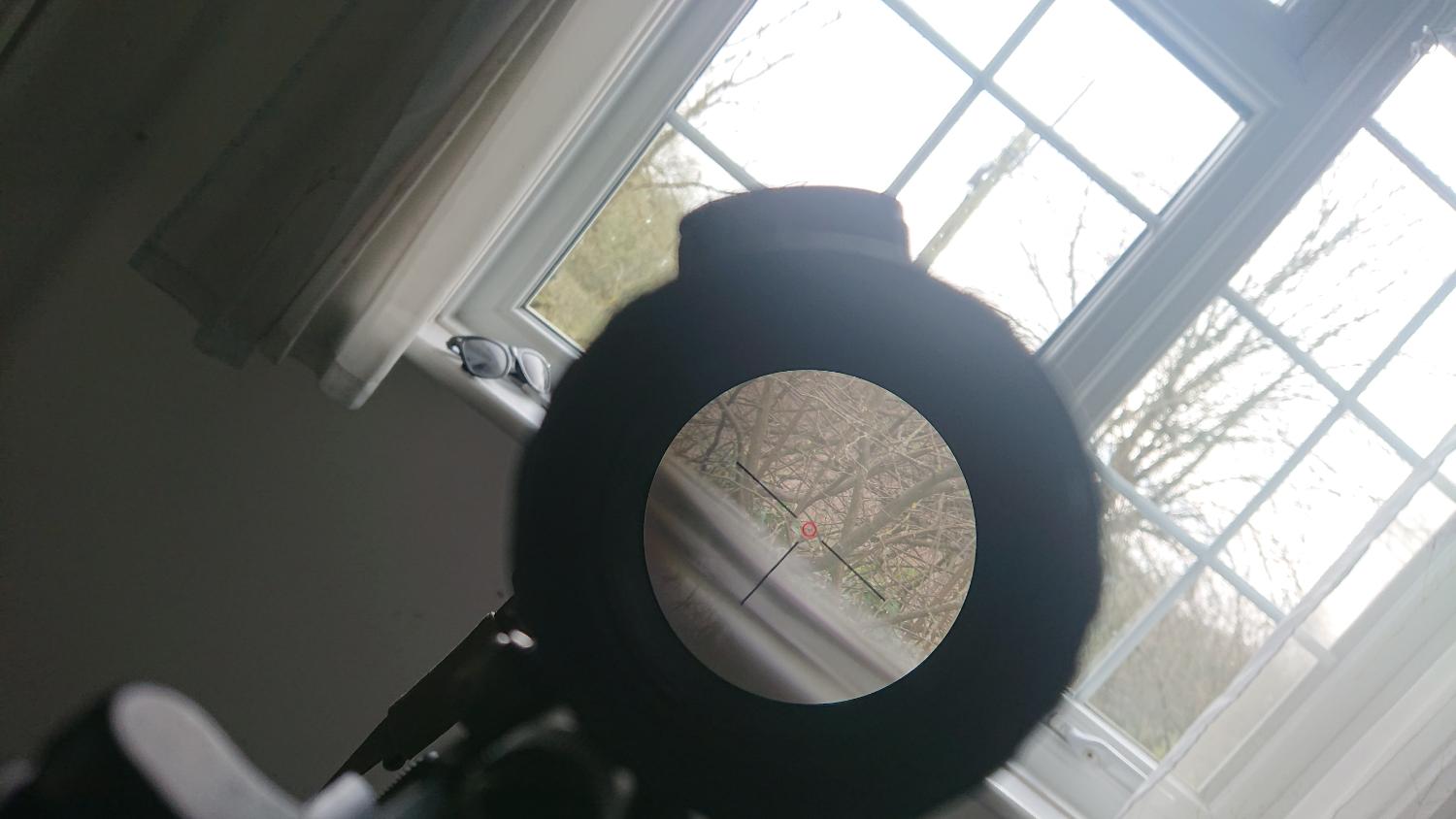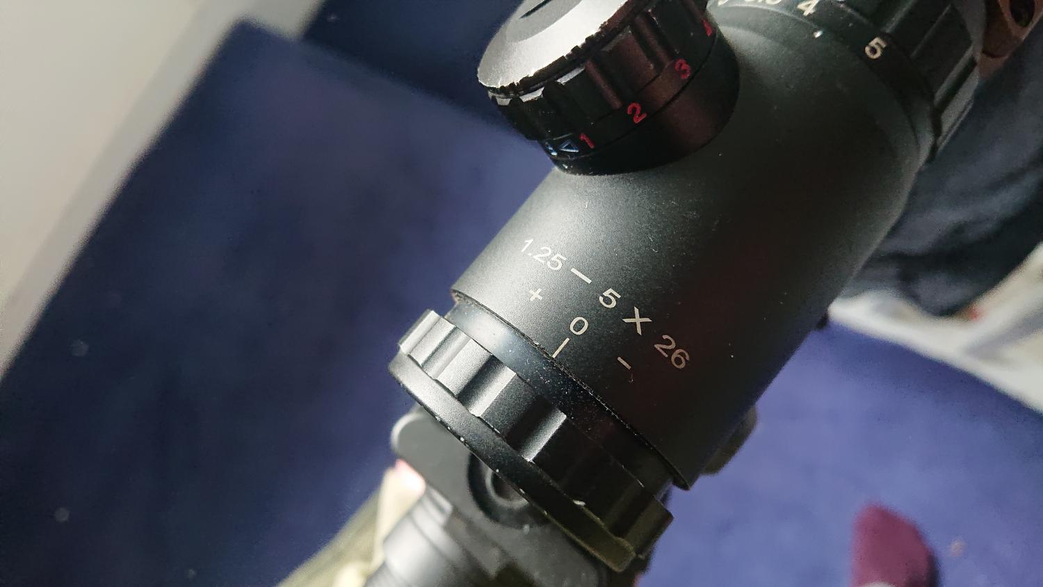 Got this as part of a deal for a gun. 1.25 - 5x illumination works as it should. The killflaah on the front has taken a hit at some point but theres no damage to the scope and it dosent make a difference to the sight picture. Price includes fees and postage.