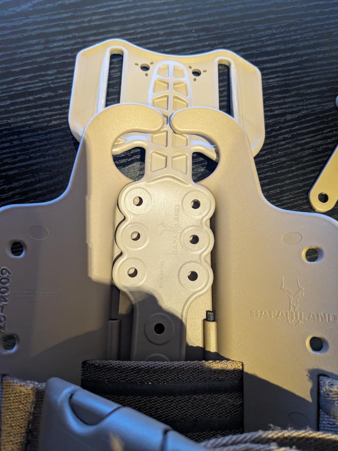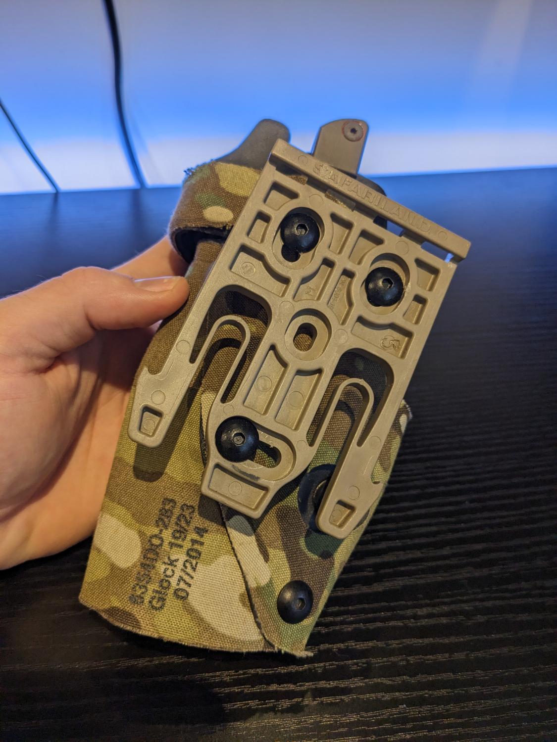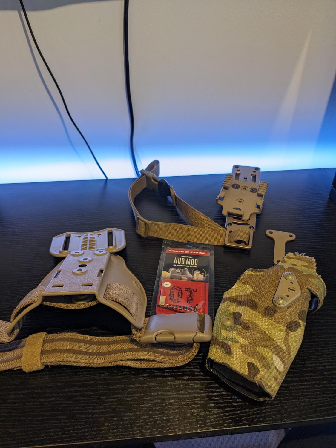 Genuine safariland 6354DO Glock 19 & 22 ALS Optic Holster, with its original safariland drop leg platform and QLS mount. Along with a few extra bits and bobs such as the OT defense als nub mod allowing for easier draws and a repro true north concepts drop leg platform. Comes with all the hardware and accessories to fit to your belt or holster! All are used but in excellent condition, price include postage and paypal fees