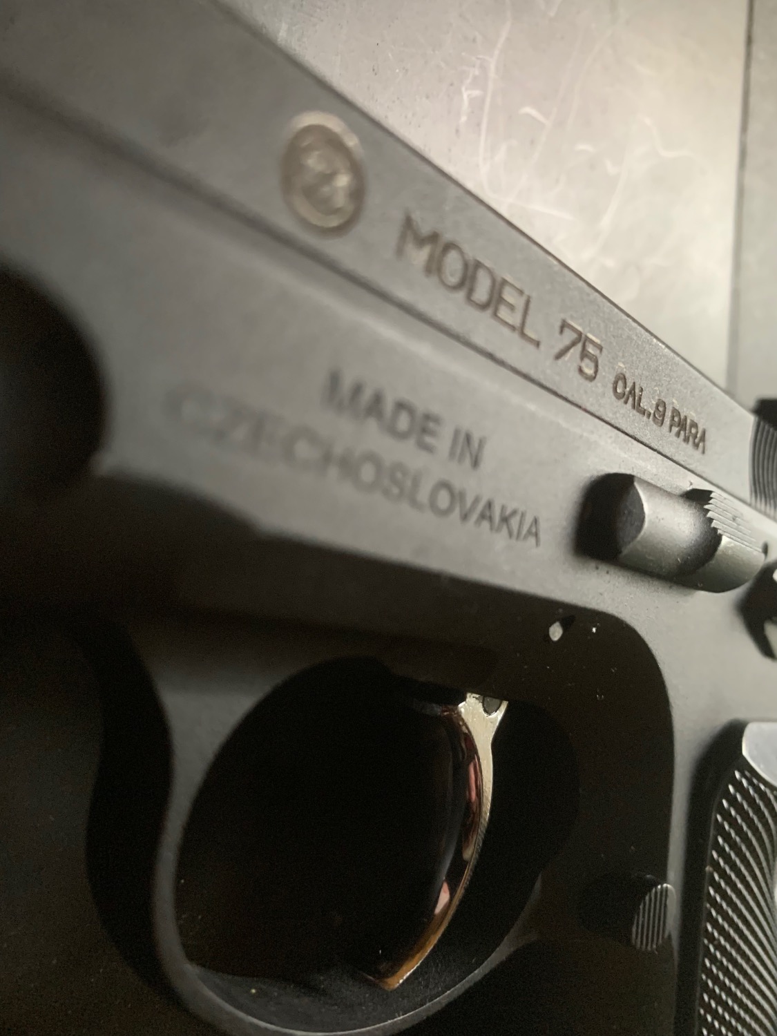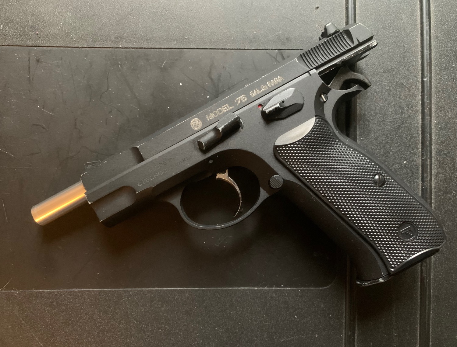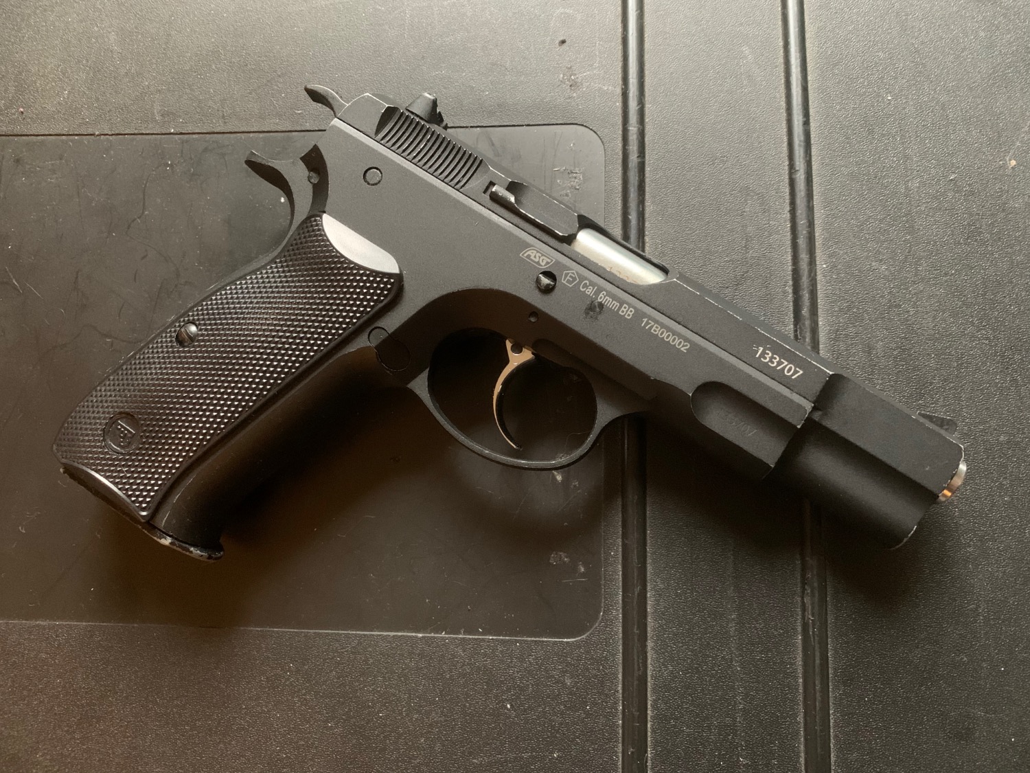For sale is my ASG CZ75, this has been engraved with mostly authentic CZ markings on the slide, frame and barrel. (Barrel one in the wrong place). Just needs a good paint job on the slide to cover up the old white markings.