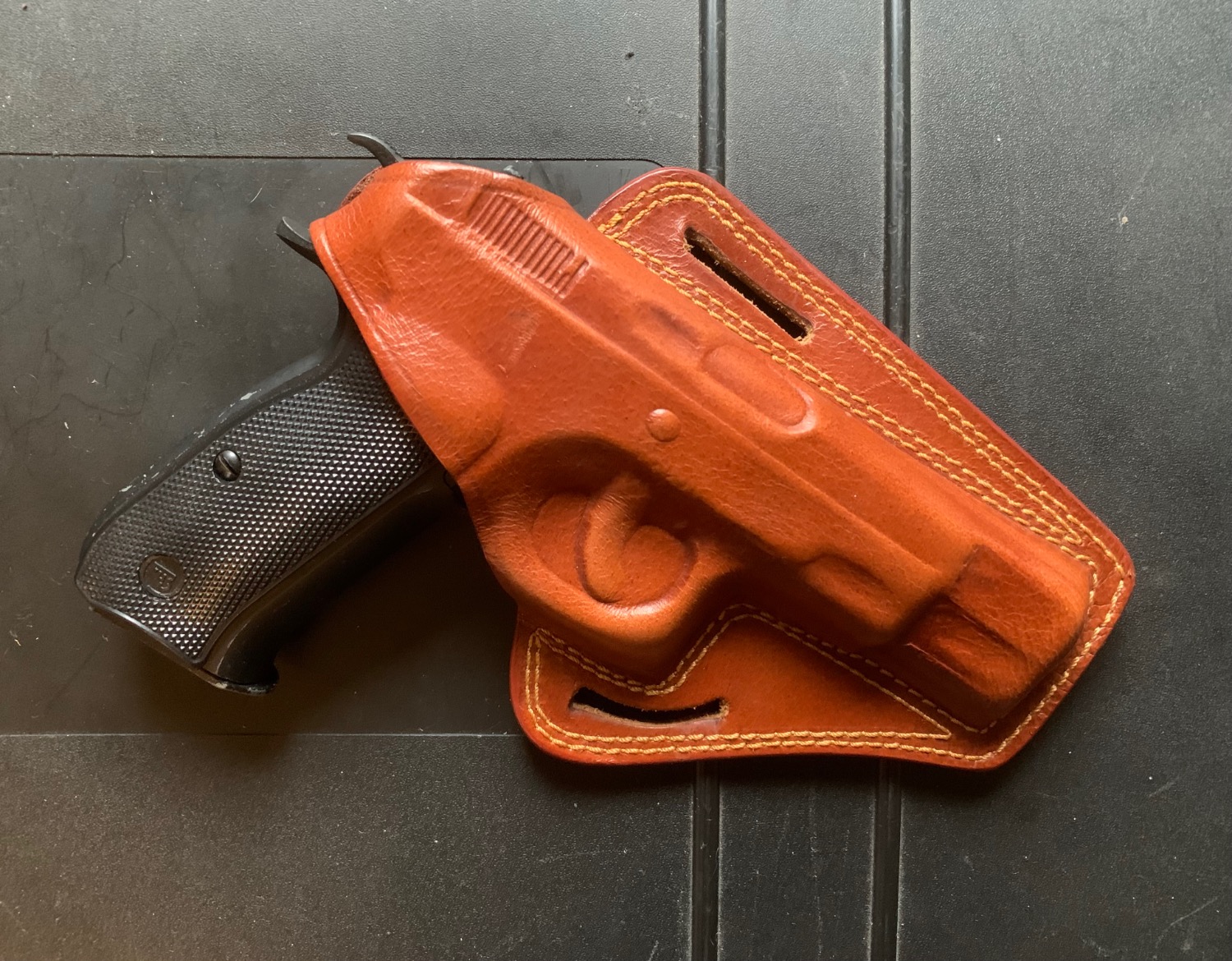 Also included is a real “K” leather belt holster, very nicely made. Has had the adjustment which is mostly redundant glued in place to fit the gun perfectly.