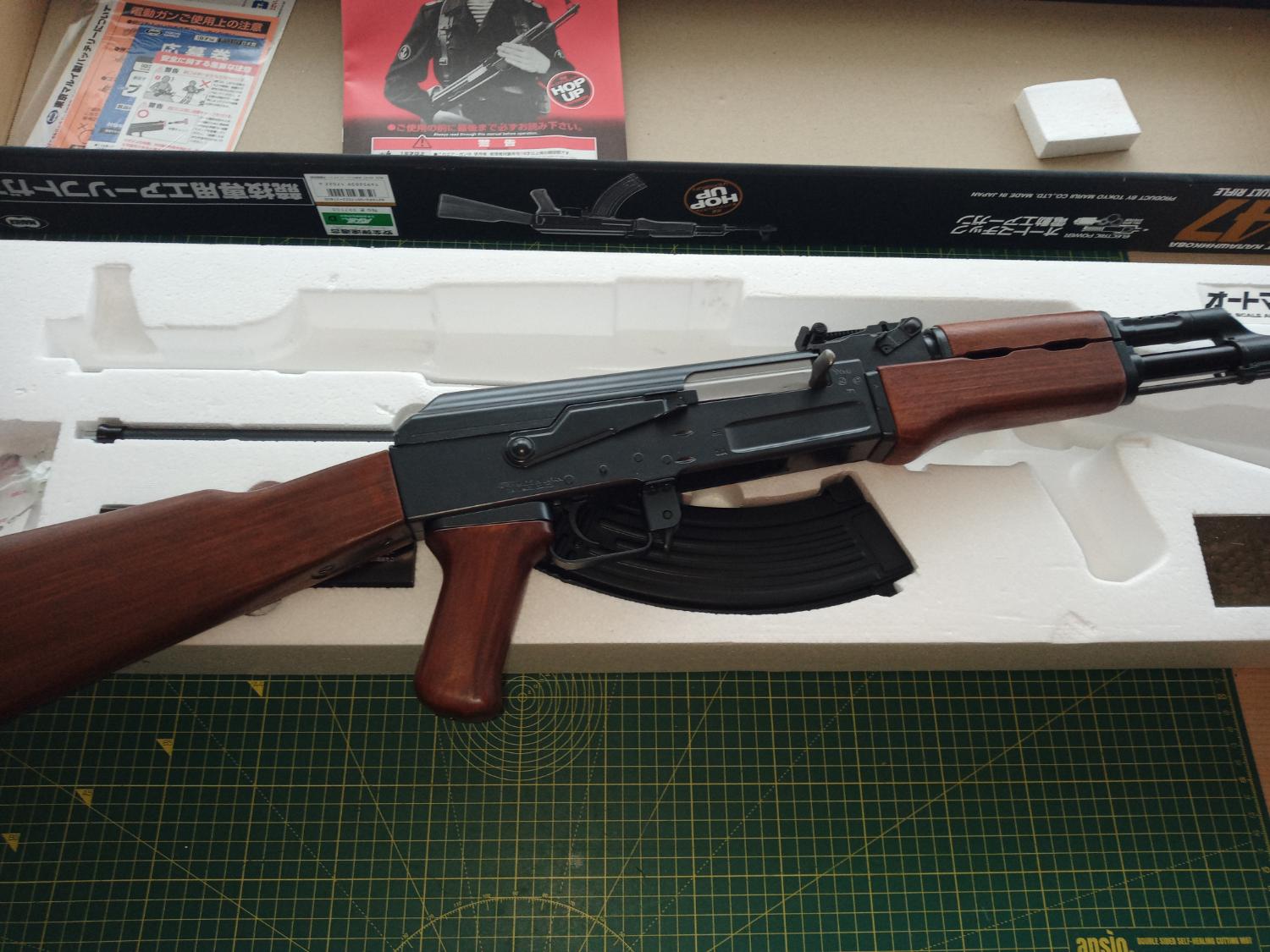 TM AK47 AEG. This is what I would call the Old School TM AK47. With the plastic lower and imitation wood furniture. I had one of these a while back and totally pimped it up to full metal and wood, but I left the internals alone, as being TM the quality is exactly as you'd expect it to be, excellent. There's no battery and I fired ten rounds through this to do the chrono for this ad. Wired to large tamiya but comes with a large to small adapter. This is BNIB! You must have a valid defence to buy this, if you don't please don't try to buy it. Payment via PP. If you use friends and family there's no charges, if you use 'goods and services' there is a fee which you can pay, but check out my feedback if you're worried about scams (something you should always do). The last picture is just to show you that I really need to sell this, maybe some of the others as well, so whatch this space. I'll quote you for postage if you do want to, probably royal mail 48hr and the like.