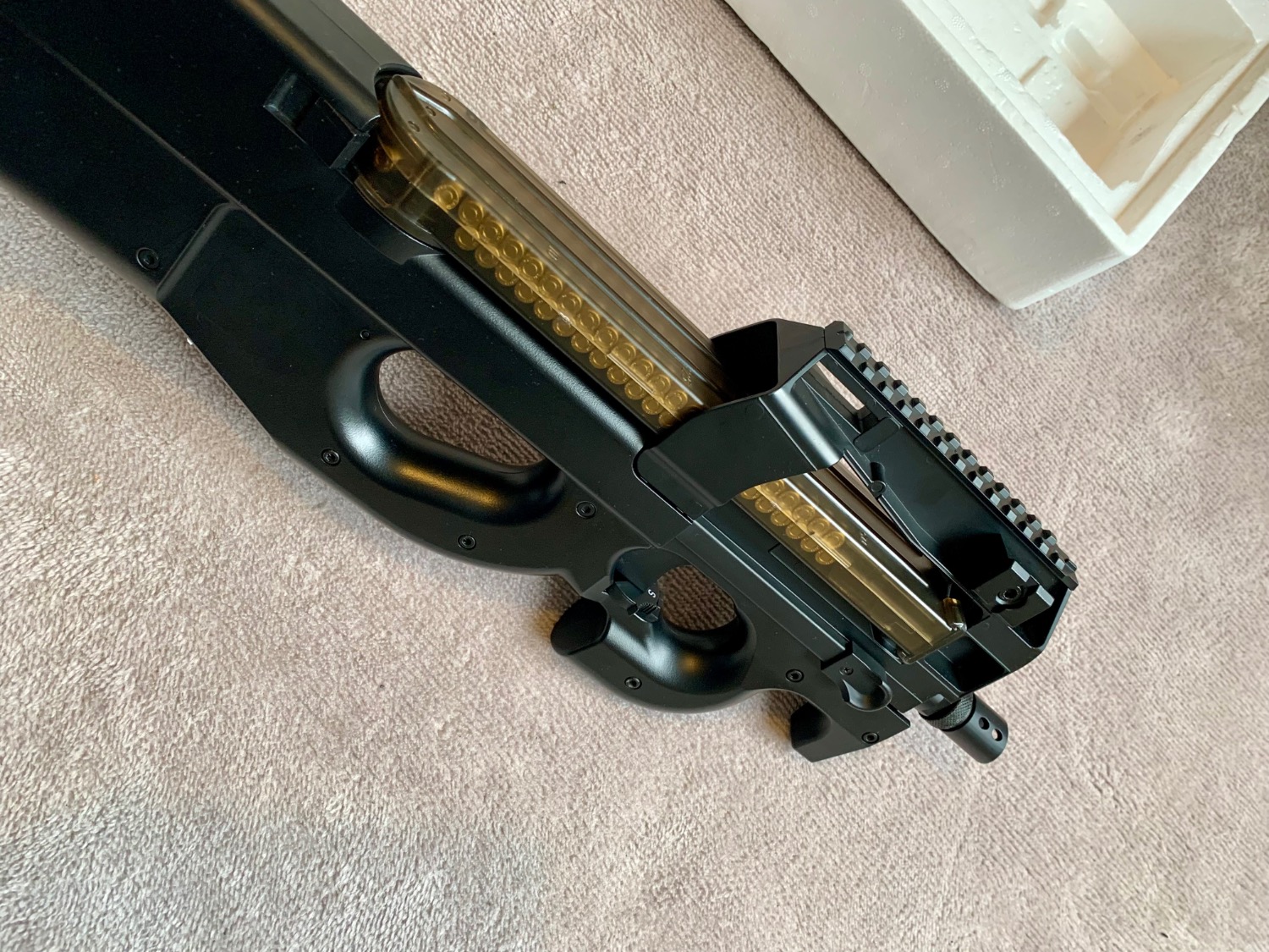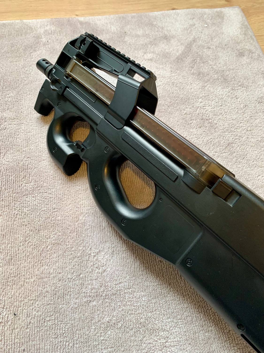 P90 aeg CM.060 with the full metal upper etc. comes with mid cap and a high cap mag. I changed the cylinder nozzle seal and it is now shooting a healthy 340 fps and just under 20 rounds a second on an 11.1v. I also re-greased the gearbox to get rid of the factory blue grease and it sounds nice now, Cool little CQB weapon.
