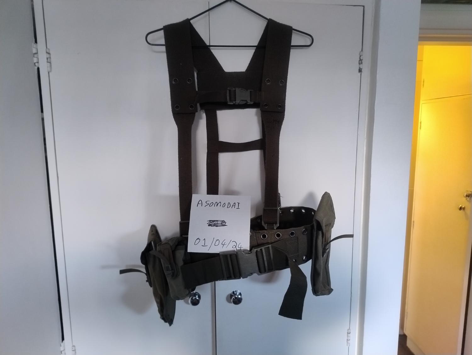 Hungarian issued Cold War Webbing/Harness. Includes the Belt, suspenders the two AK pouches and the rare pistol pouch. Made in East Germany and stamped for Hungarian use. Very hard to get hold of especially in the UK ( I found this in a surplus store in Barcelona of all places). In used condition, but everything works as it should.