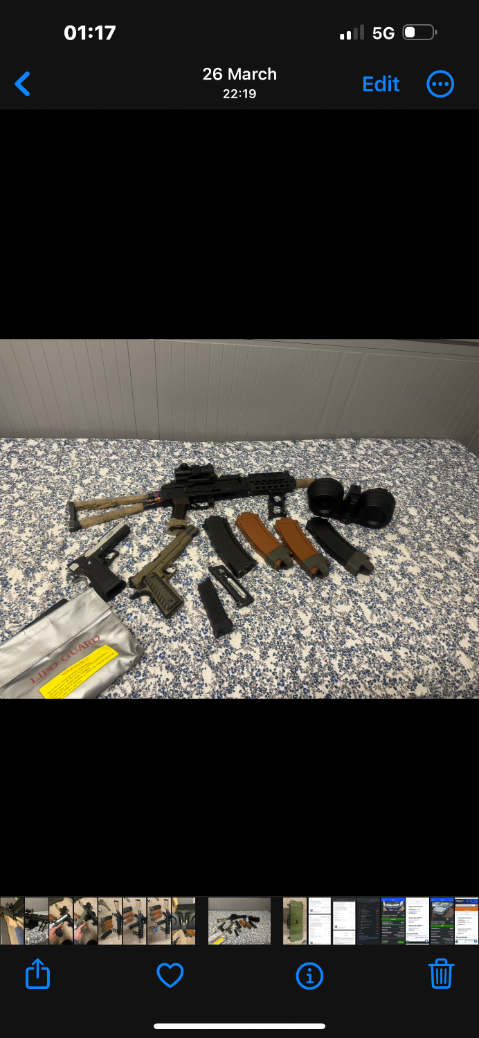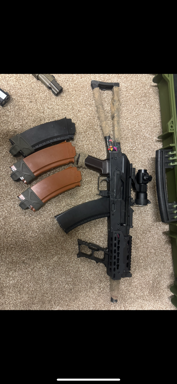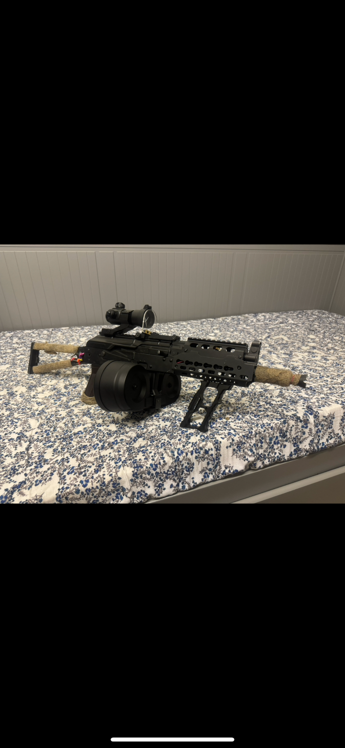 Drum magazine, tm xtreme 45 hi cap, scope, foregrip, 3 mid caps, 2 batteries, Nurpol case