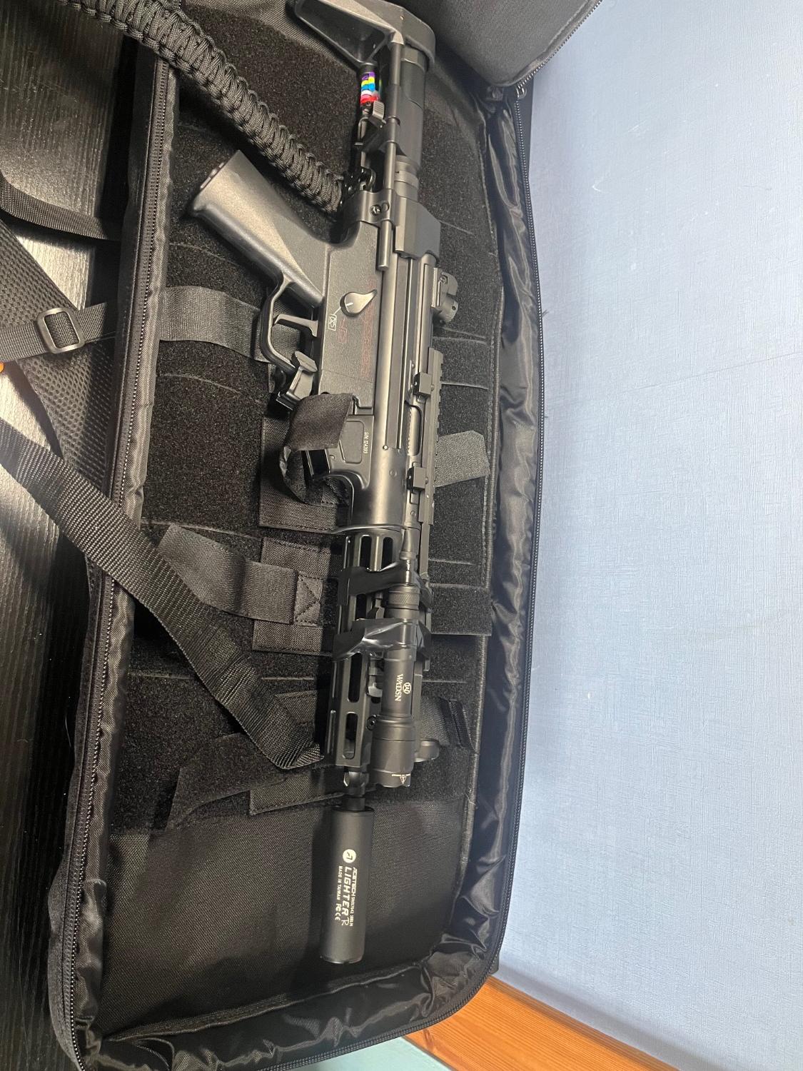 Hardly used mp5 very good condition full metal construction rotary adjustable hop up unit 330 fps. The sling/tracer unit and flash light are all included aswell as the rifle bag. Msg me for any other information