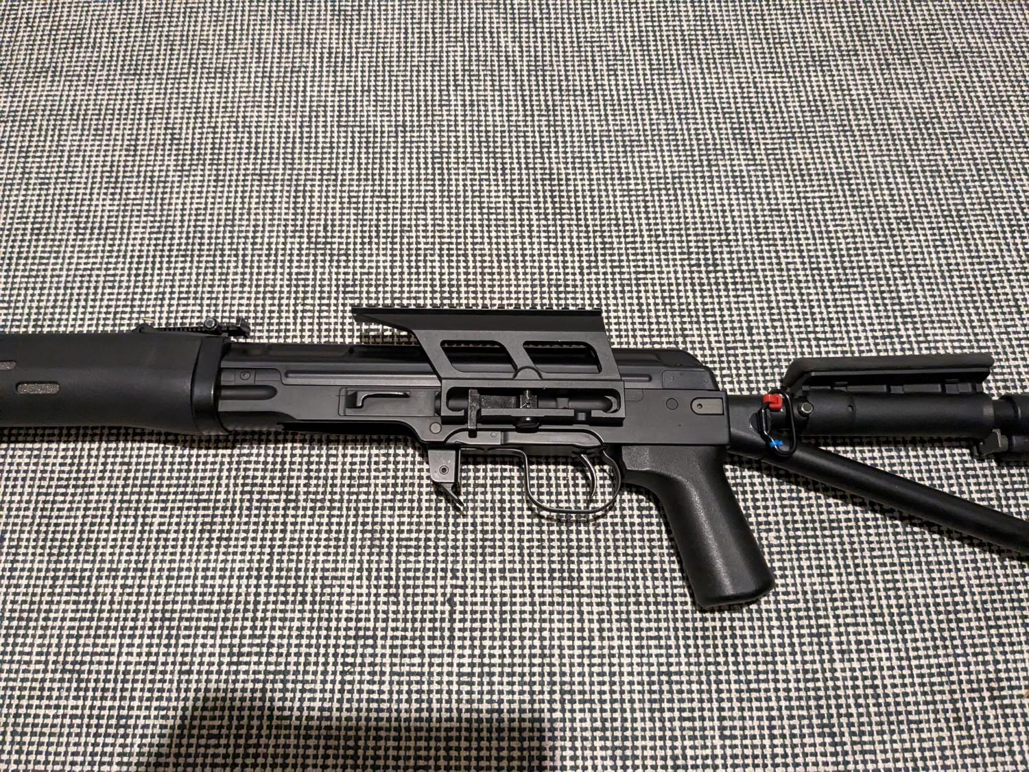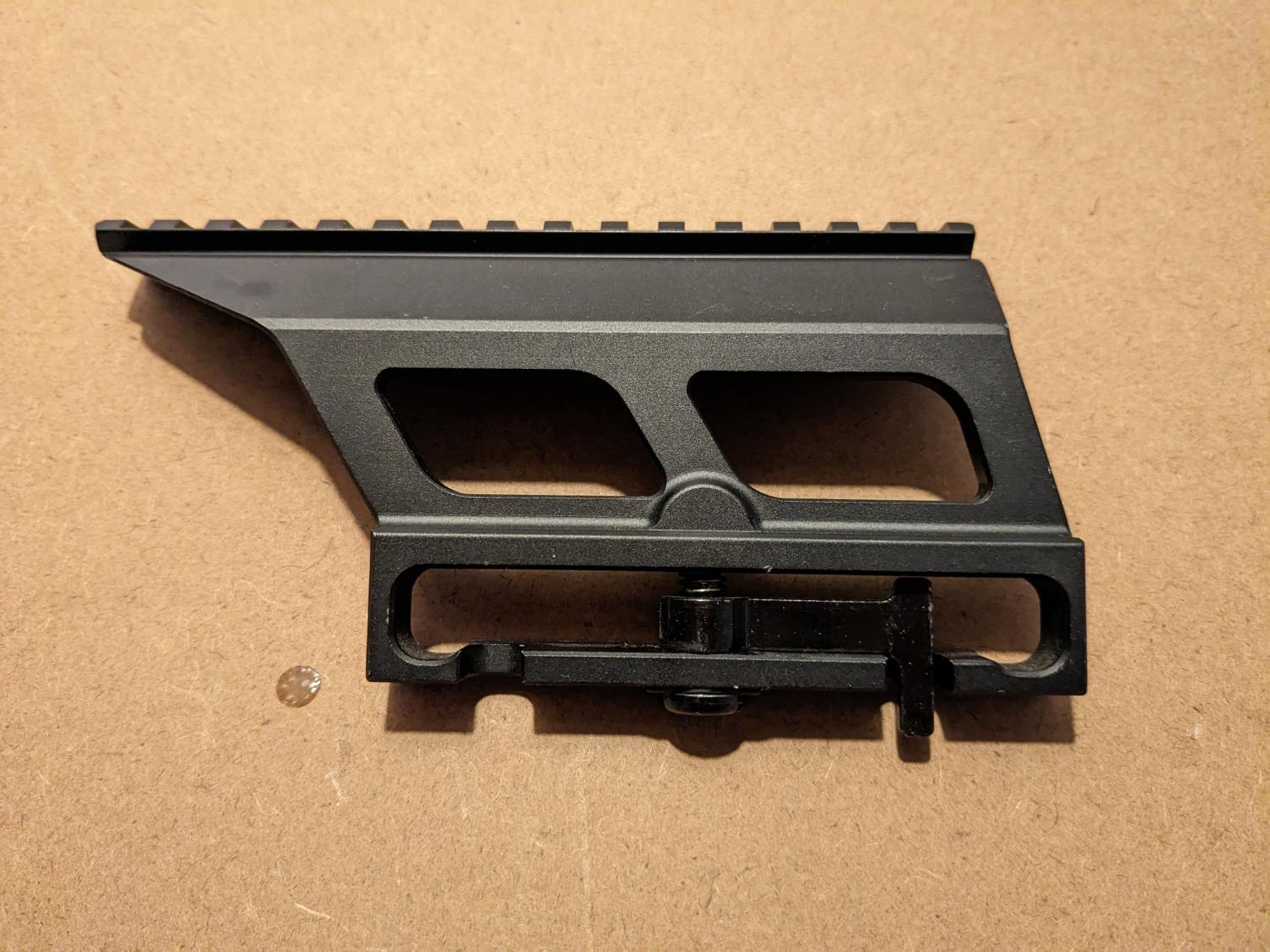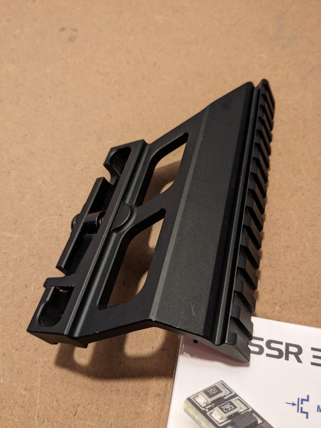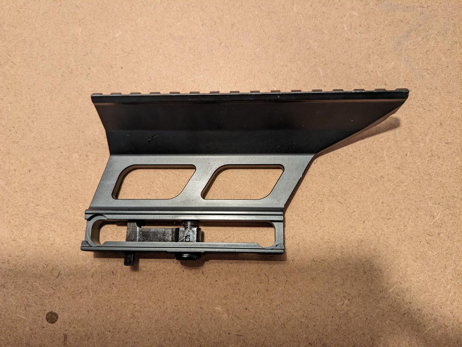 Cyma SVD scope mount with 20mm RIS rail. Very good condition having had light use. Attaches to the rail on the right side of the SVD receiver, confirmed to fit Cyma/S&T and King Arms SVD replicas.