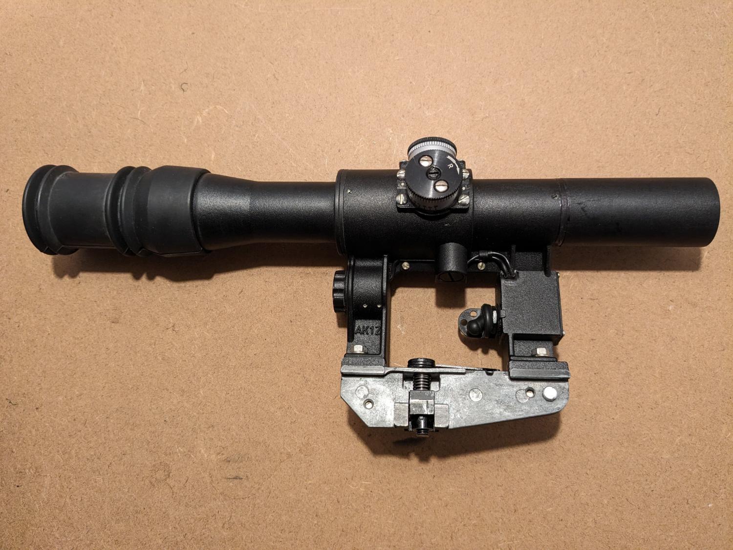 After much deliberation I've decided to part with my Belarusian POSP scope. This is a real-steel scope manufactured by BelOMO in Belarus and is effectively a commercial version of the PSO-1. I bought this very shortly before Putin decided that Russia wasn't big enough, and it may be very difficult to get hold of these for a while due to the manufacturer having been put on a blacklist by the EU/UK/Canada/US etc.