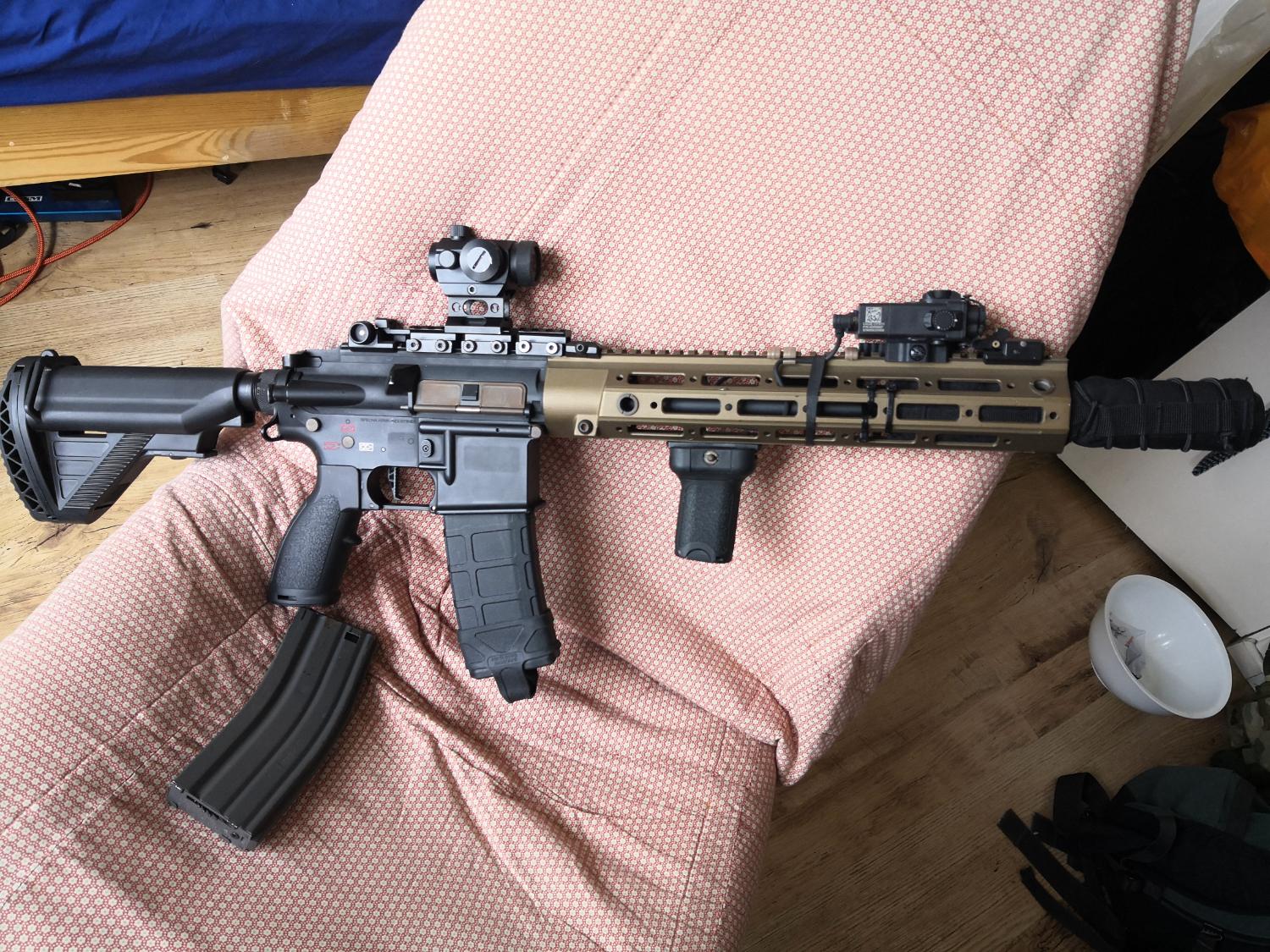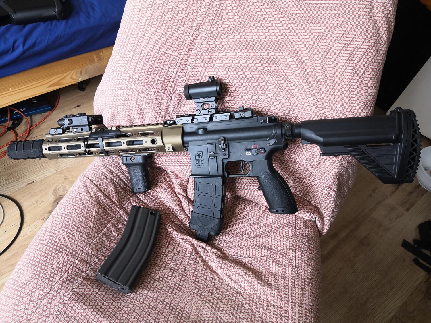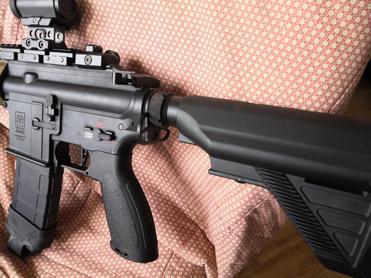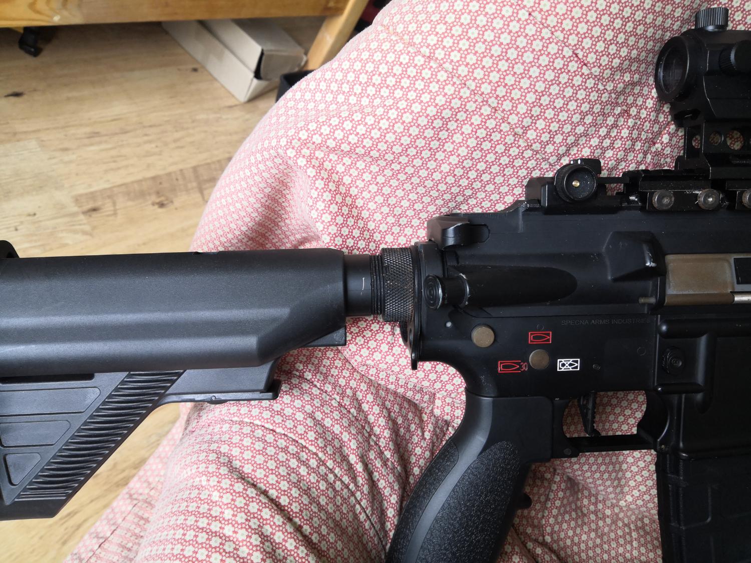 This rifle is in decent conditin with knocks and evidence of use. This rifle has a stock spring installed but can be easily changed within a few minutes thanks to the quick change system. These rifles are really impressive in my opinion with mosfets pre-installed meaning that all aspects of the rifle can be adjusted including trigger sensitivity, fire modes and pre-cocking.