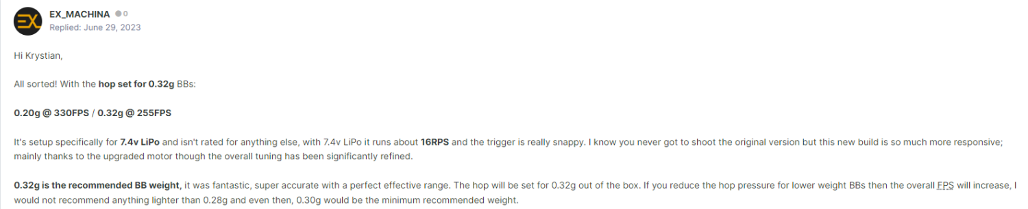 0.20g @ 330FPS / 0.32g @ 255FPS