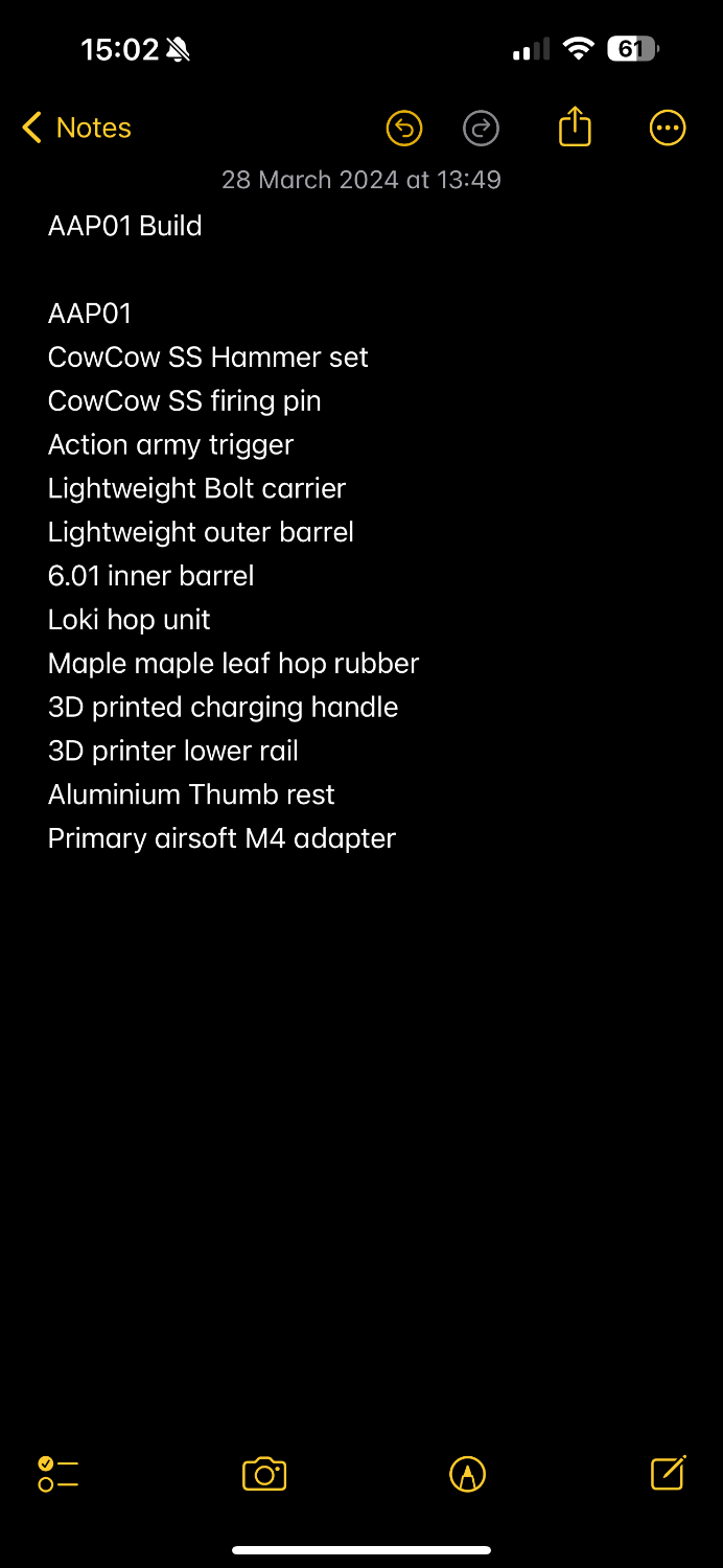 Selling my modified AAP. Works perfectly, only been skirmished once and is in fantastic condition. Parts lists are in the photos, will not come with torch or tracer. Looking £200 Based NI so would prefer collection but can do postage at buyers expense.