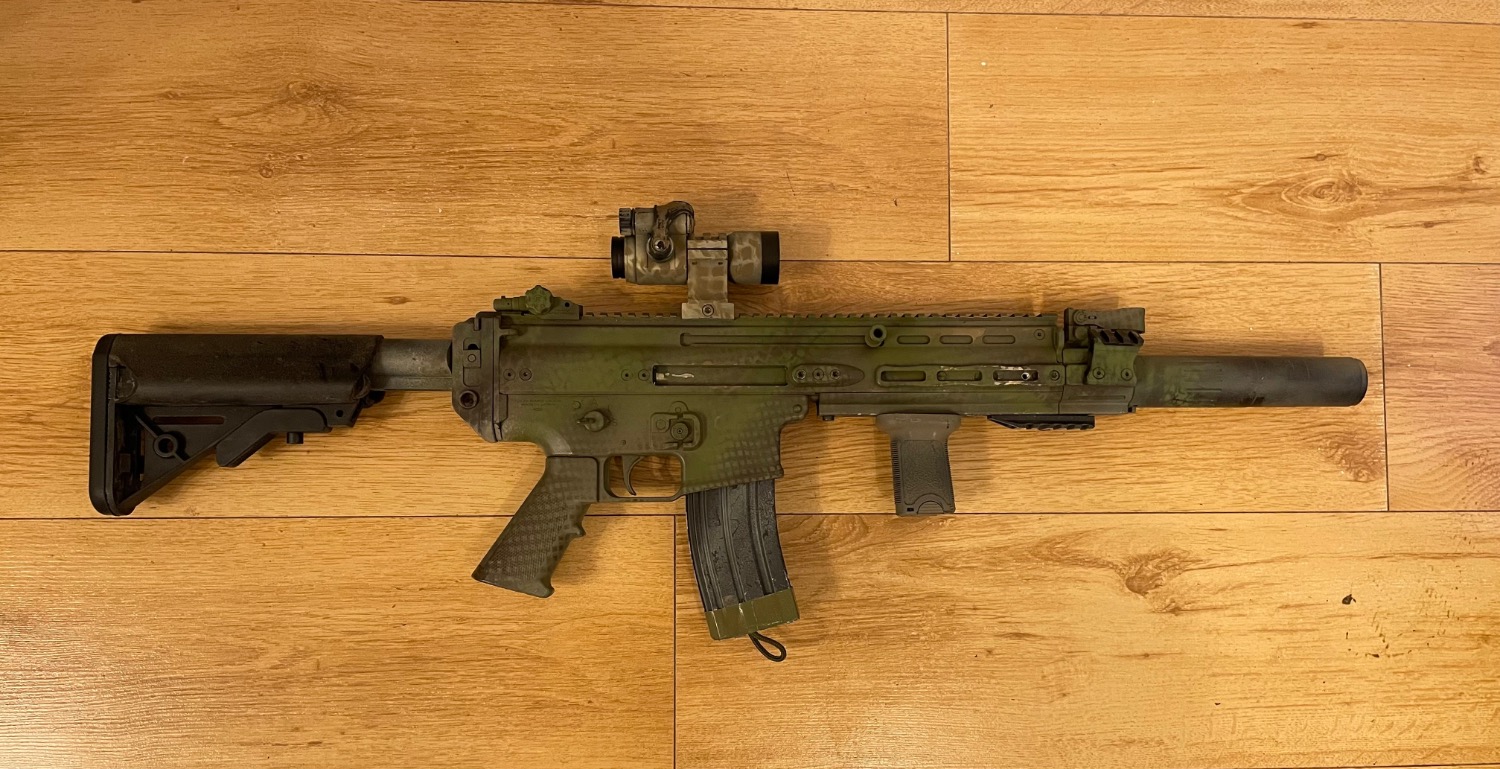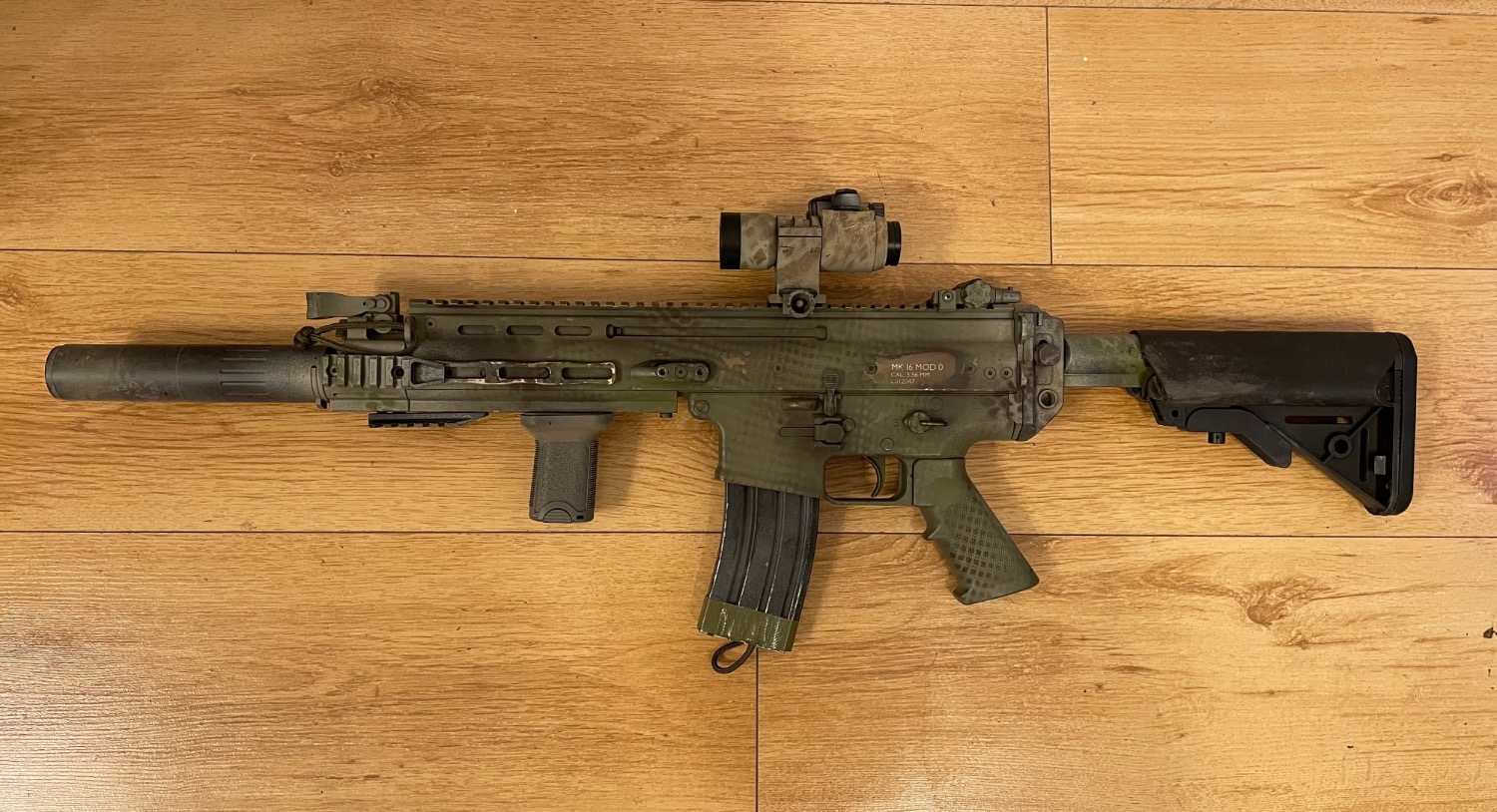 mlock front end conversion with a picatinny offset torch mount, side and lower picatinny panels with pistol grip.