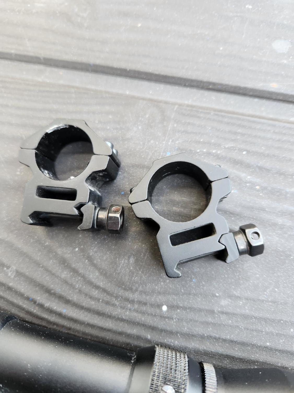Works fine up to x6 zoom then blurry, missing turret caps and tube crimped, comes with a set of mounts for weaver