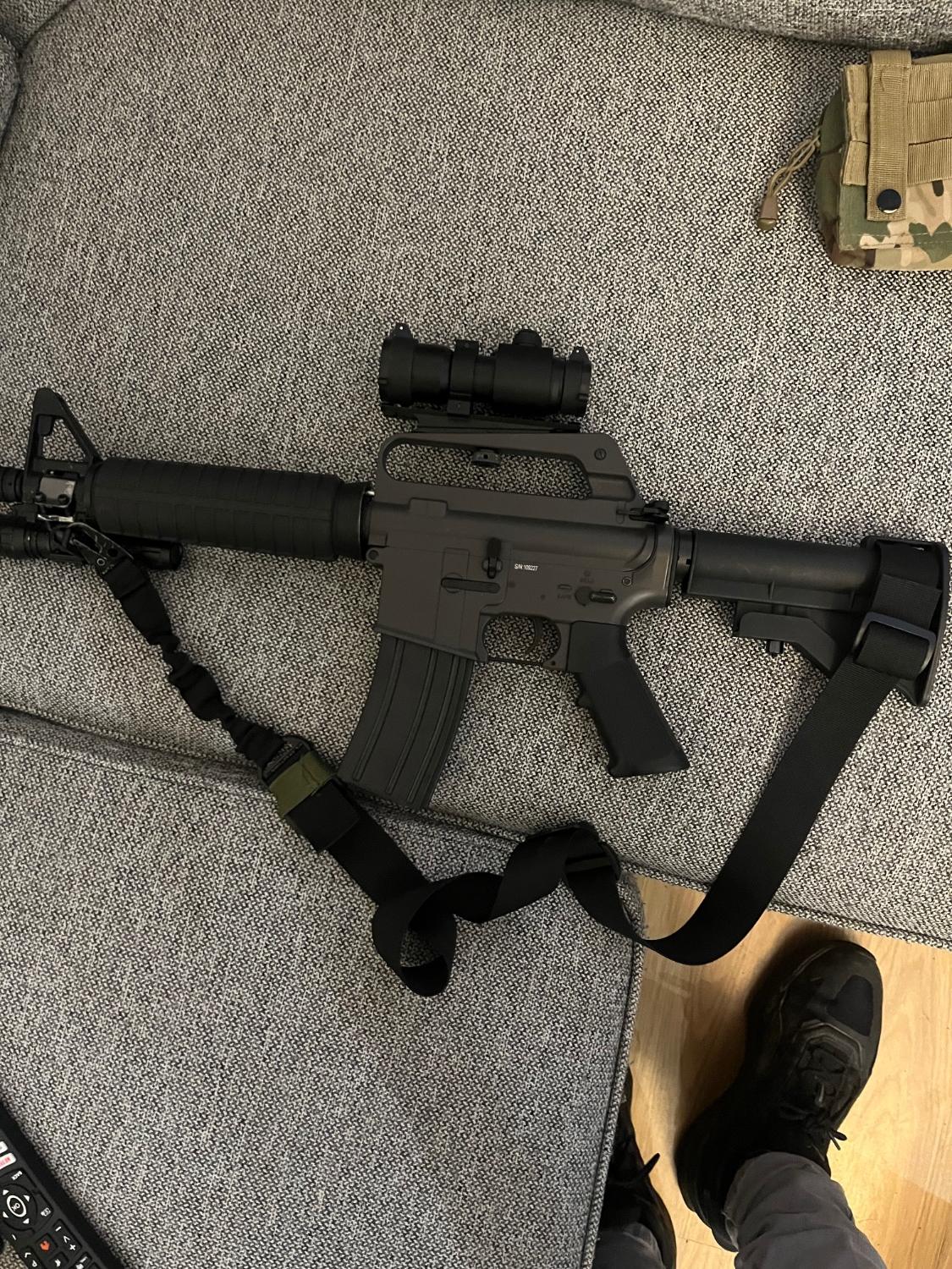 has seen one game and includes a g&g green hop rubber and real steel handguard installed. Will include all attachments (sling, carry handle mount, aimpoint, modified weaver mount and flashlight) or bare and up to 5 m4 mid caps